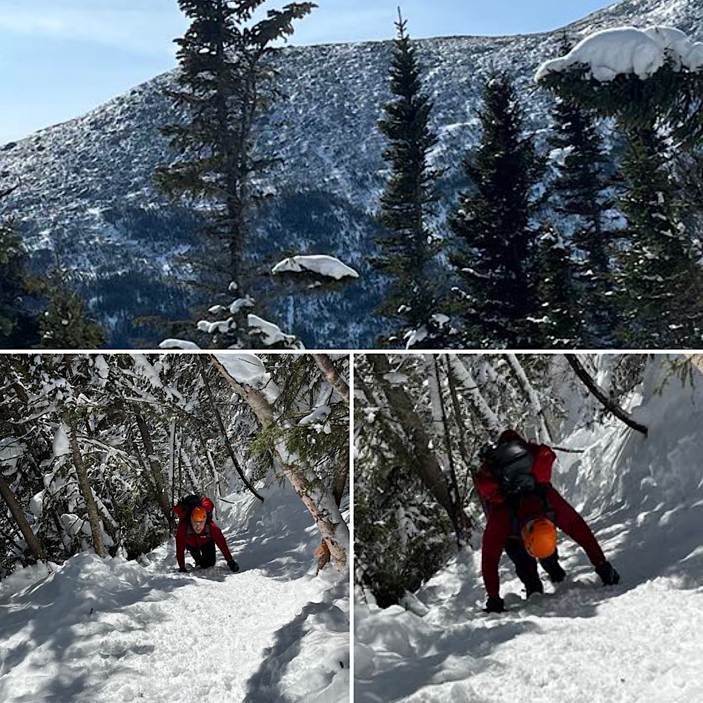 We had two days. Day one was to be the training day in prep at for the next, and day two was to be an attempt on Mt Washington. Our guest, from Connecticut, was stoked to be part of it all. And being he’d done stuff with us before, he was also stoked to have Redline Guide Ken Hodges leading him. The team didn’t summit but did make it to Lion Head. The winds were not his favorite part. Apparently one group did go up but the winds were fierce enough to turn most groups around. According to Ken, he had a great time nonetheless. Here are some photos (day two only), from Ken and our guest (thank you).