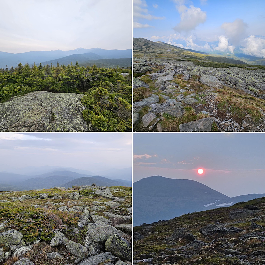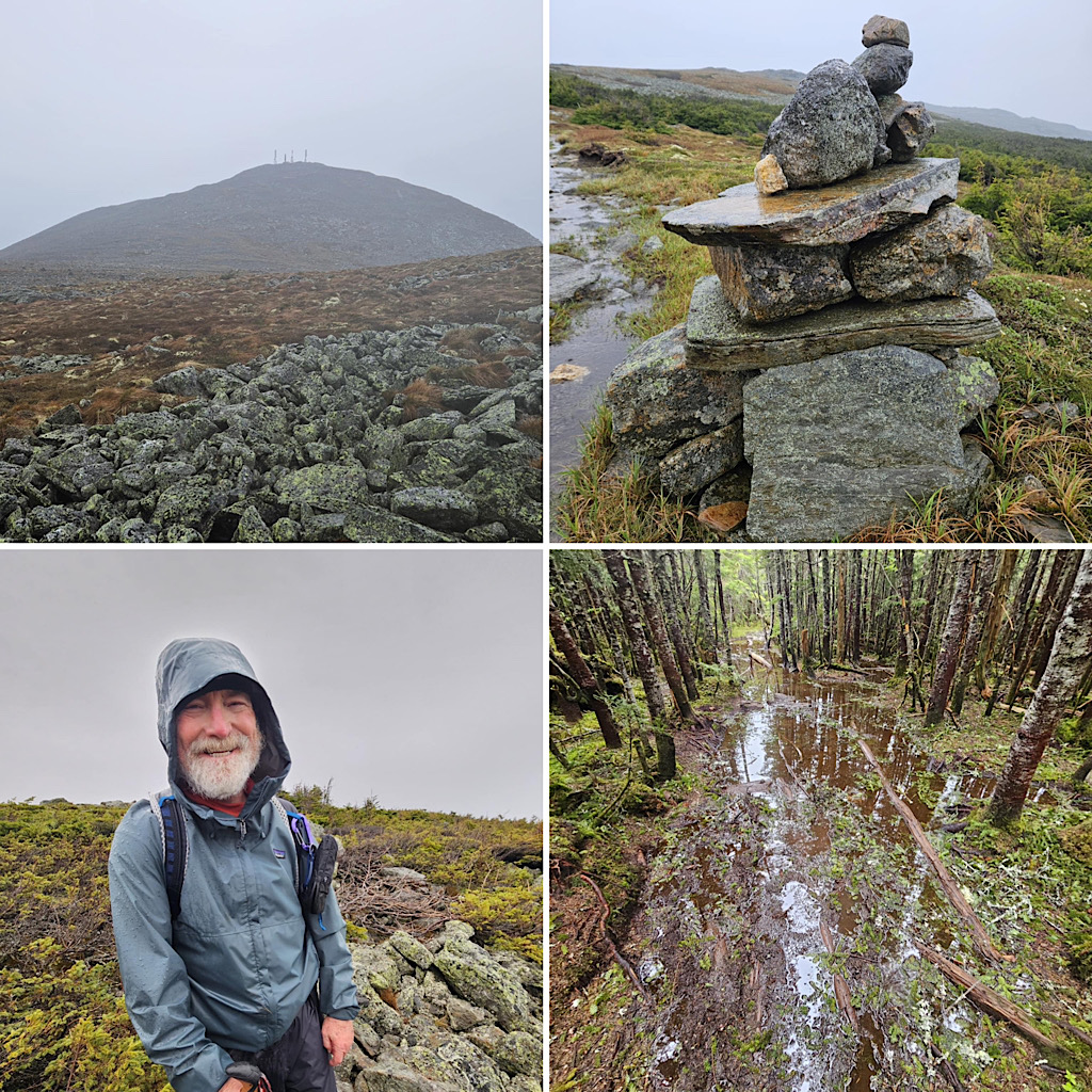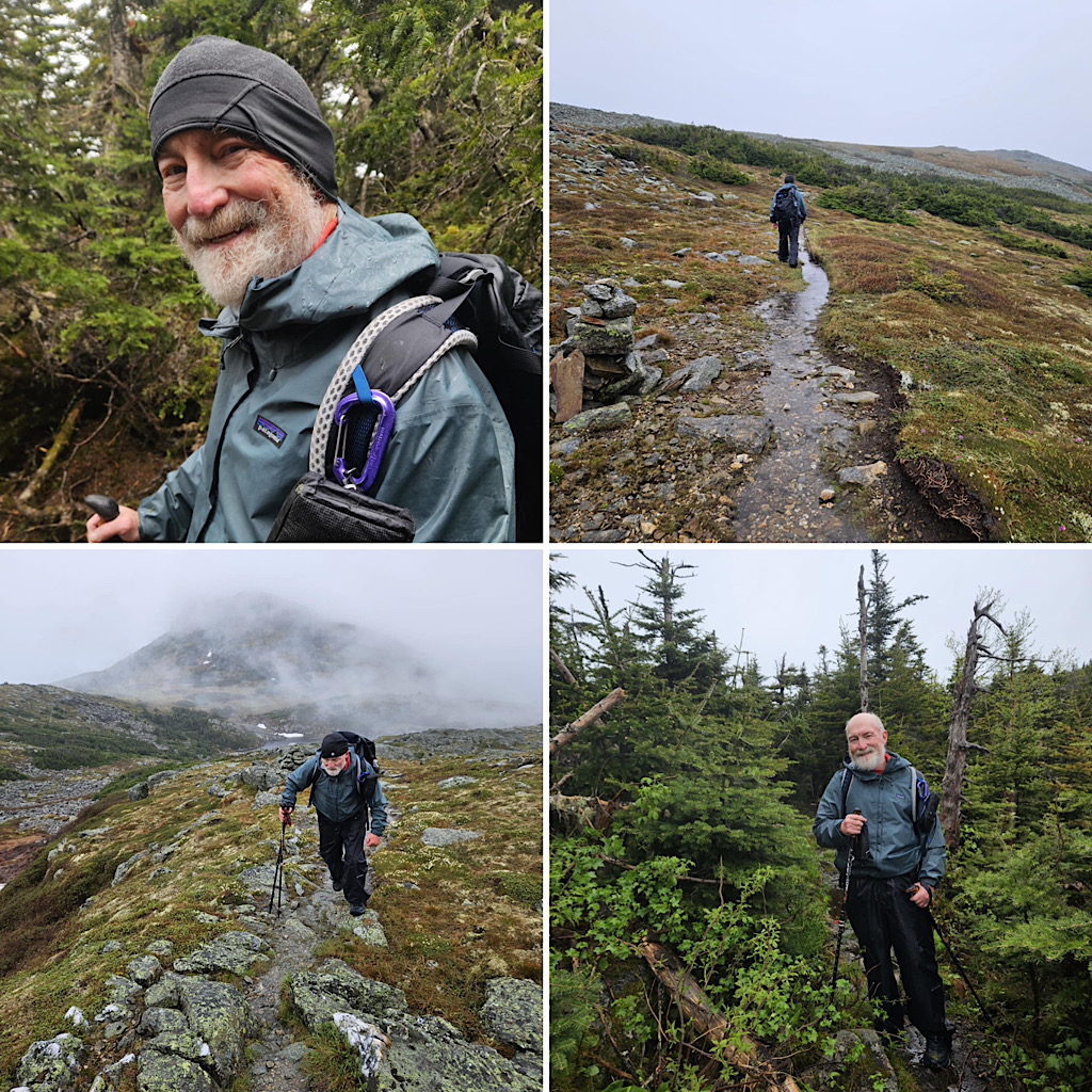 For Isolation — a peak that’s often approached by either the miserably waterlogged Rocky Branch or a dry trail route with 5,000 feet of elevation gain — we decided on the easier (but still not easy!) option to hike down to the peak from Lakes of the Clouds hut. The roughly 8-mile out-and-back hike took us 10 hours on rocky trails and, on the wooded portion of Montalban Ridge, deep and relentless mud.