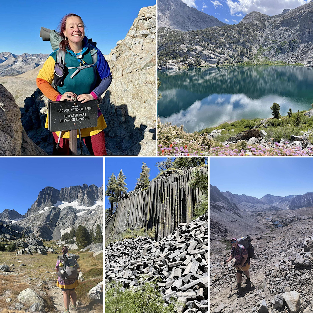 I spent month in the Sierra. About 300 miles ranging from 8000 feet to 13.200 feet. Alpine lakes, high passes, meadows with wildflowers. A section of the Pacific Crest Trail with some additional meanderings. —Arlette