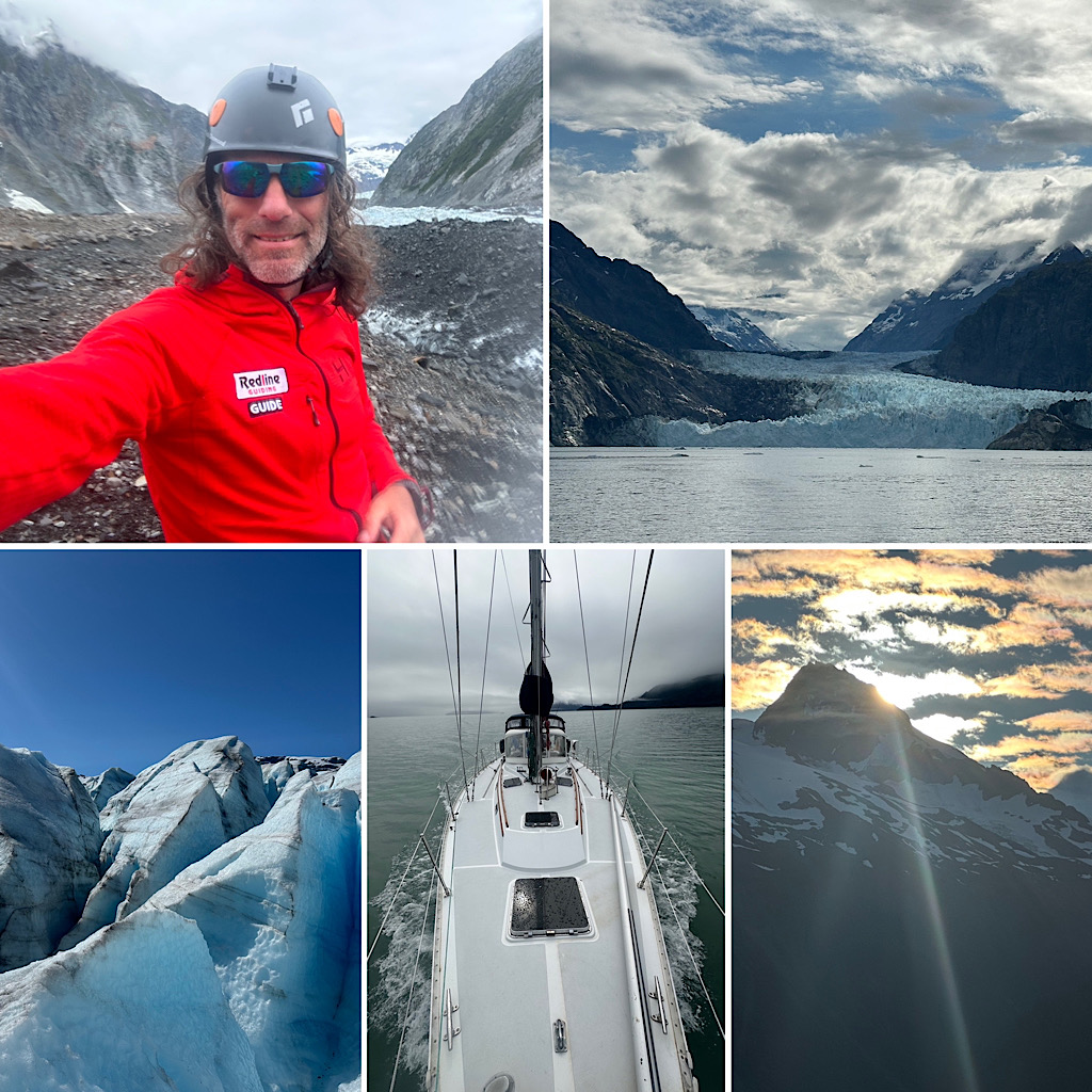 I have a goal of climbing Mt Fairweather. I’m not sure when I first heard about it, but at 15000’, Mt Fairweather from the sea by glacier to the summit by the Carpe Ridge presents a not oft repeated appeal. When my brother sailed solo from San Francisco to Juneau, we decided to explore between Juneau and Lituya Bay. We spent time on the Mendenhall Glacier before the Suicide Basin released and flooded the region. We then spent 6 days in Galcier Bay National Park, exploring the glaciers and observing whales. Finally, we went to the Pacific Ocean and north to Lituya Bay. The goal: to get to glacial-sea base of Mt Fairweather and understand the logistics. I’ll be back. An unbelievable world in transition and the next time I see it, it could be different. —Will