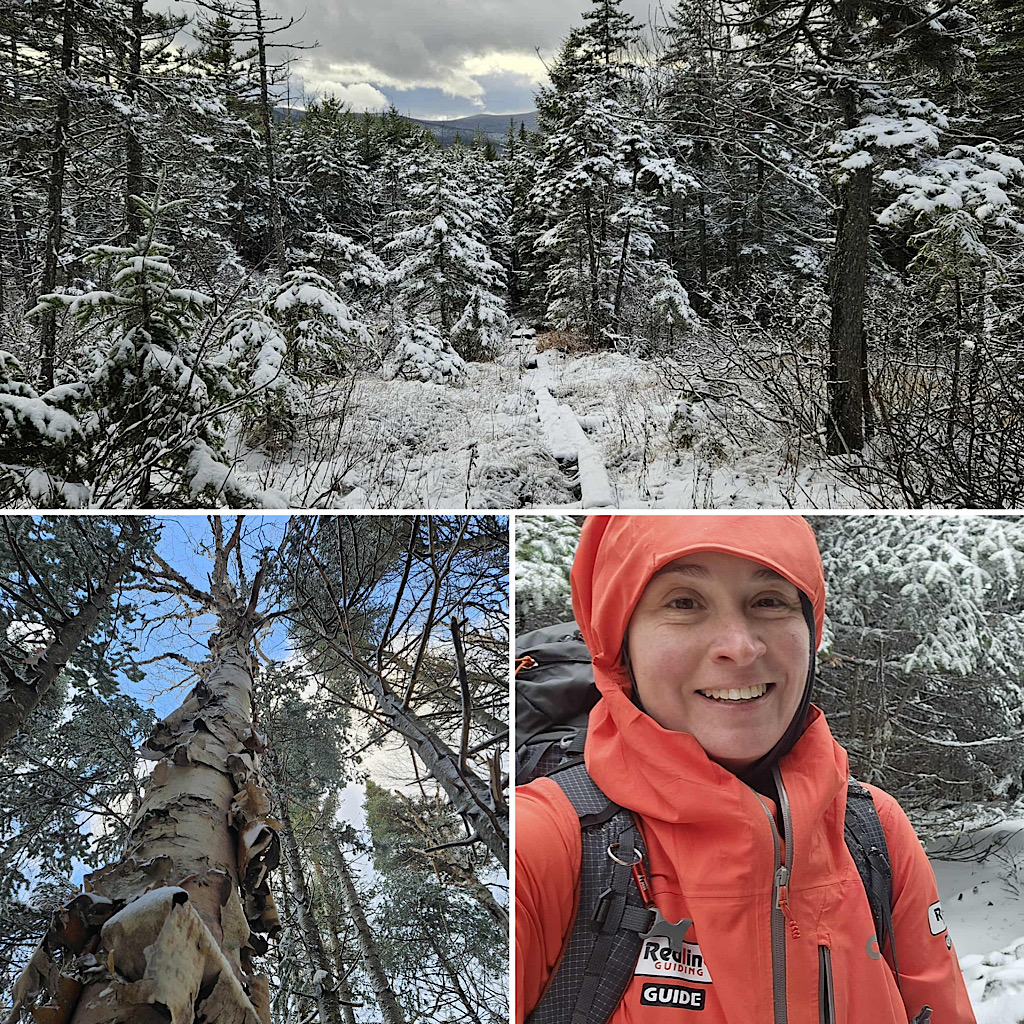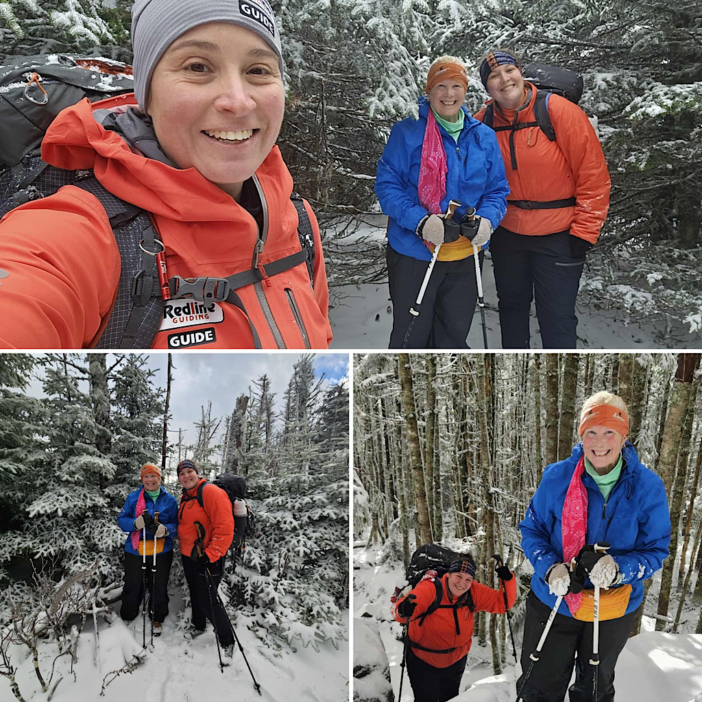 Not everyone likes winter hiking, especially early in the season before we get used to the energy-sapping cold, initially trickier terrain (this gets easier with snow), and heavier packs. It’s a tough transition. Couple that with overnight gear and it doesn’t get easier. Our suggestion is to ease in and keeping going. This can set the stage for developing more power — which will be noticed in the spring. That said, it’s subjective and if it’s simply not enjoyable, then you’ll be like most people who hike the Whites. They don’t prefer winter. The following words and photos from Redline Guide Debra McCown details a multi-day Zealand Notch and surrounds adventure where our guest is testing the waters, so to speak. Noting lots of smiles, by the way!