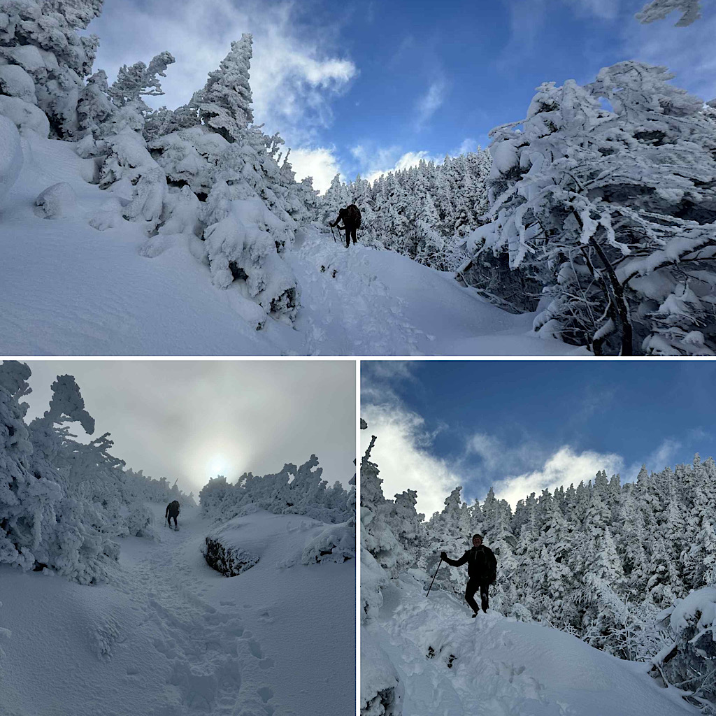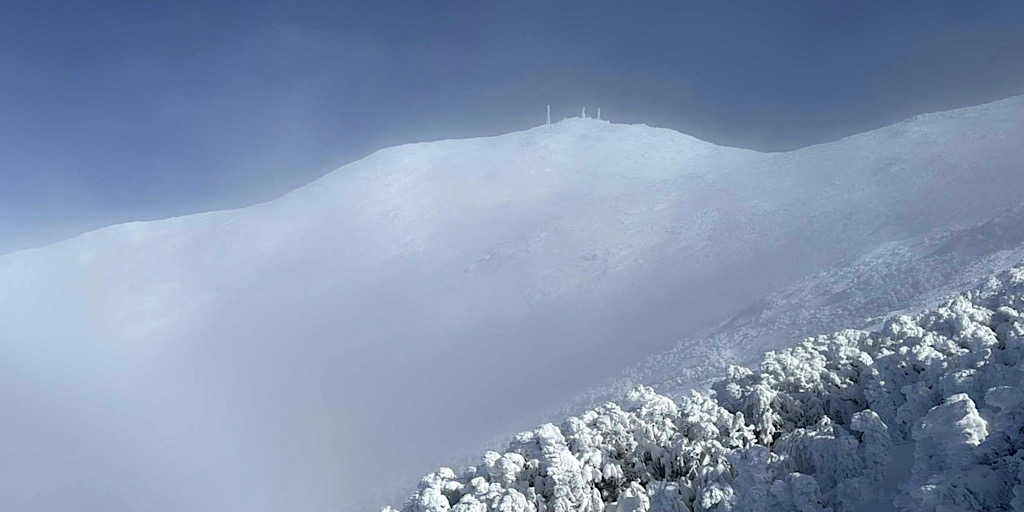 The strong winds and bitter cold stopped our returning guest and Redline Guide Chase Hall in their tracks after taking on the first of two mountains planned for the day. The guest, working on his Grid, was able to get Mt Monroe today but not Mt Eisenhower just to the south. He will have to get it done next year. Chase took some gorgeous photos and wrote the following summary: