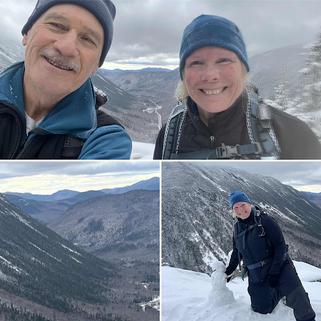 Starting out, winter hiking can be tough. Heavier packs, more discomfort when not on the go, more layers, freaky weather, etc. It takes some getting used to. There’s a period of acclimation, sort of like some sort of weird hazing or initiation. Before long, however, one gets used to it. Next thing you know they find their stride, and with it comes enjoyment. The focus changes. Instead of seeing the challenge the clarity of the fun rises to the top. The pack seems lighter, the discomfort less so, the layers appreciated, and the freaky weather becomes part of the interest. Before long the smoother trails and thinner crowds take prominence in our minds. It’s about that time the secret of winter hiking becomes known. That secret? Well, it’s knowing that getting out in it keeps us warm through the entire season. One this trip Redline Guide Ken Hodges led one returning guest on an enjoyable hike on Mt Willard — one of the 52 With A View peaks.