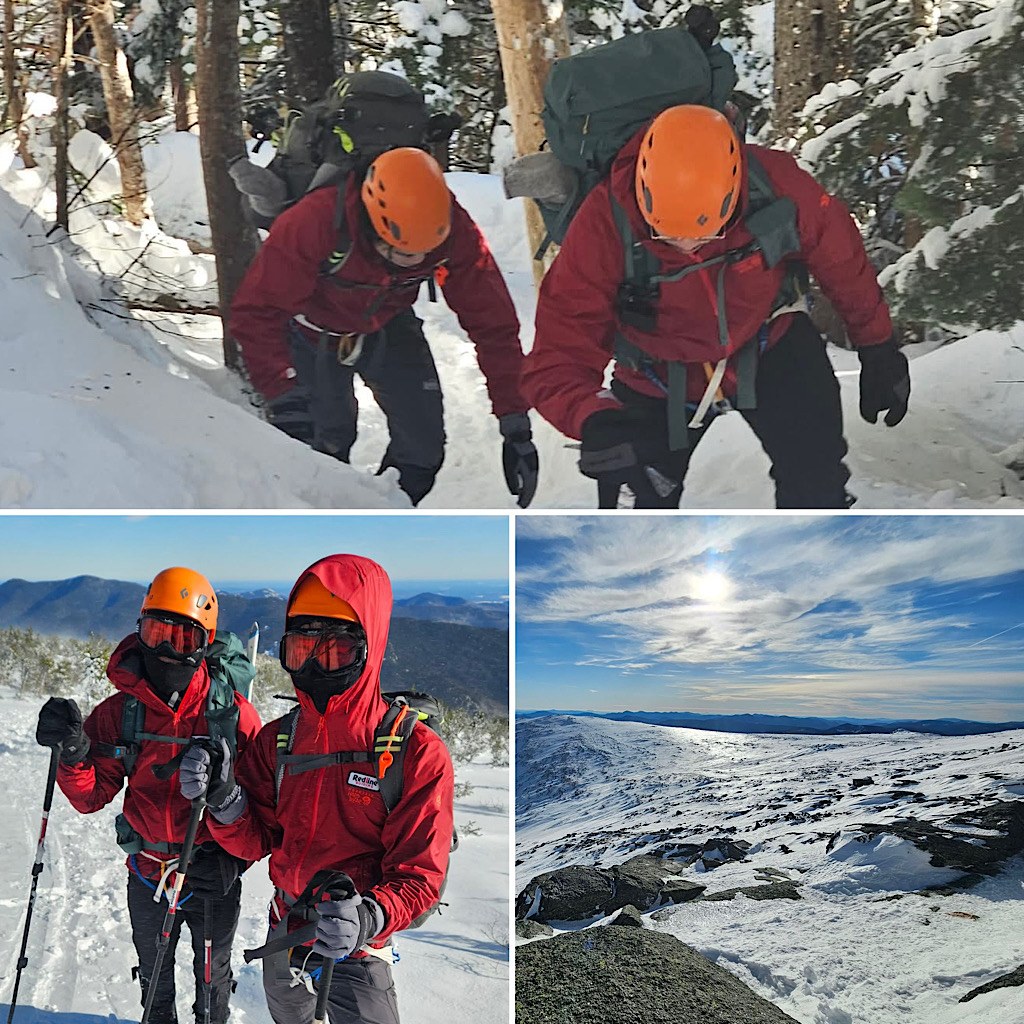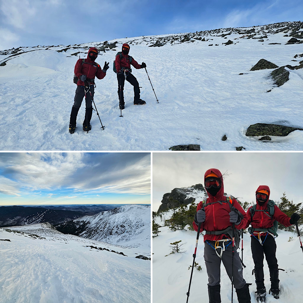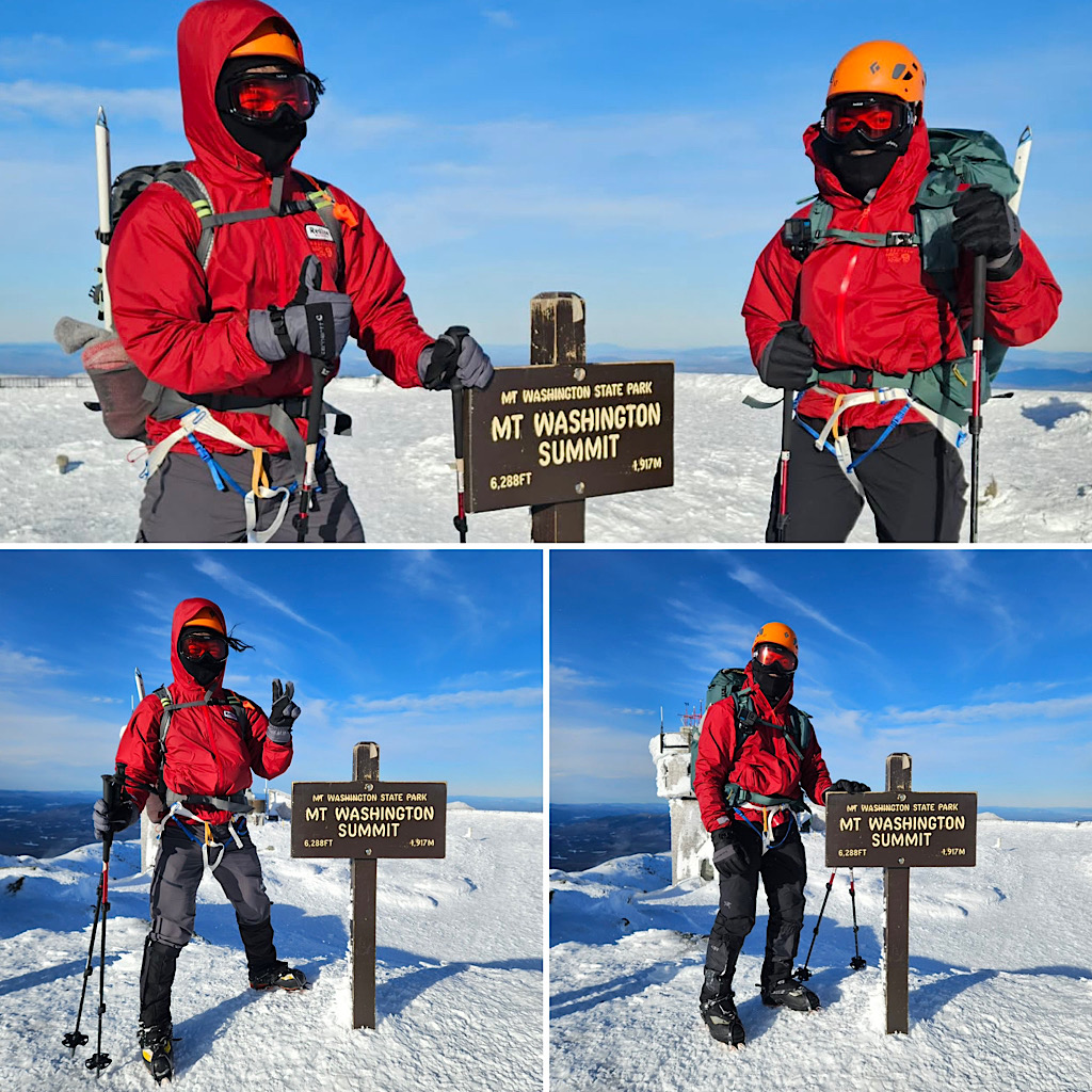 They conquered the challenge of climbing snow with an ice axe for the first time on the Lion Head Winter Route and then braved the high winds Mt Washington is known for from treeline to the summit.