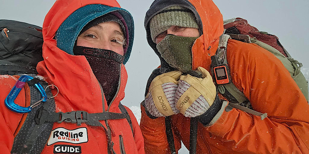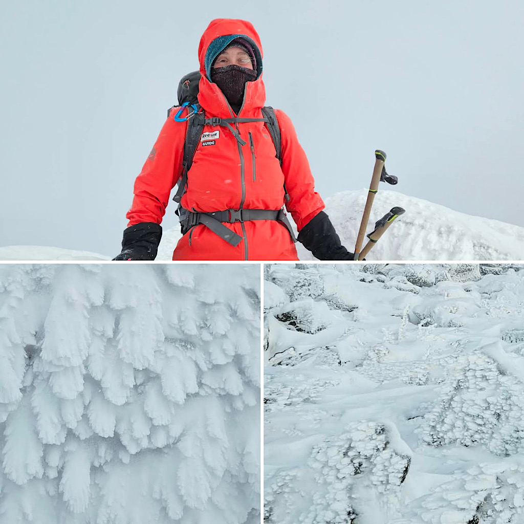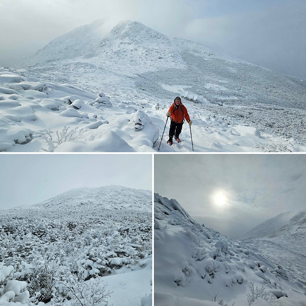 An oft-returning Gridder came to us hoping to grab Mt Madison and Mt Adams for December (he’s hiking every 4000-footer during every month of the year — a.k.a. “Gridding”). Normally we pair him up with Redline Guide Chase Hall but Chase had some personal hiking to attend to so we put Redline Guide Debra McCown on the mission. To avoid increasingly challenging conditions the team began early. This put them in a good position to grab Mt Madison via Osgood Trail after coming up Valley Way. Upon summiting they dropped back down Osgood to the hut, then descended as way they came up using Valley Way. Unfortunately due to “poor snow conditions and strong winds,” as reported by Debra, our guest decided to save Adams for another day. What follows are a few photos of the still-productive day.