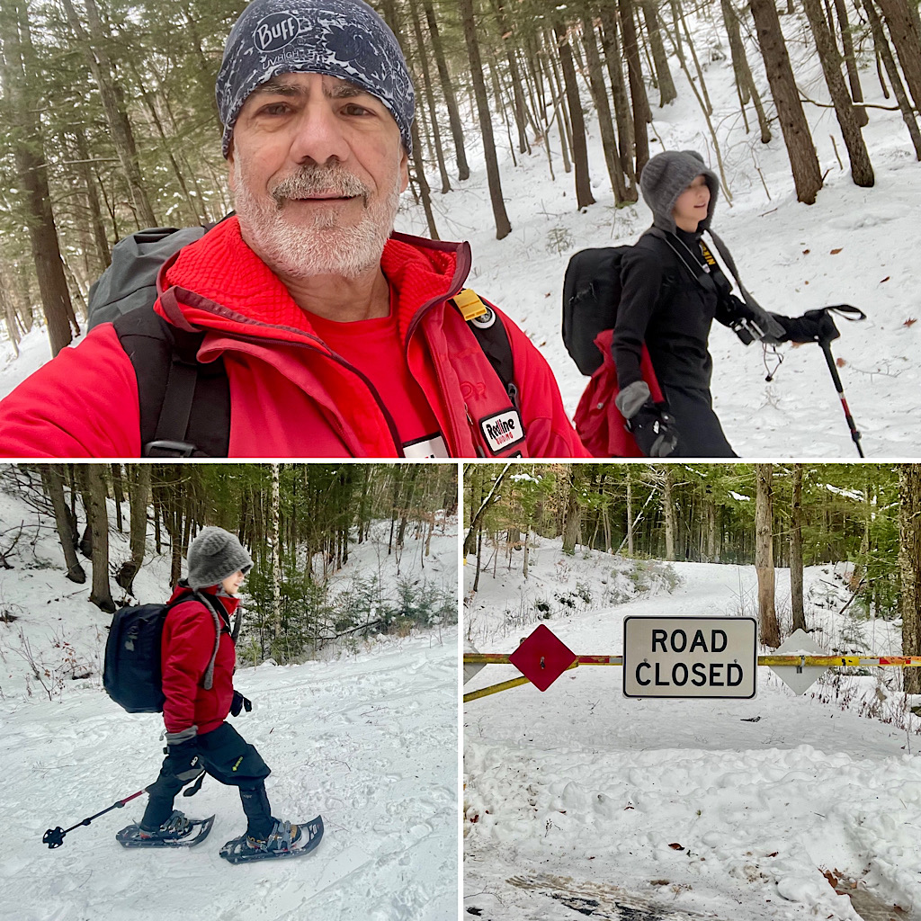 We were contacted by a South Korean photography student focusing on documentary imagery. She was visiting New York City but wanted to spend a few days up here in the New Hampshire mountains. She reached out to us wanting to try snowshoeing. We were given only a day’s notice but Redline Guide Mike Cherim was able to lead her on a small half day adventure. She wanted a fairly relaxed sunset tour and these requirements actually helped facilitate it. For several reasons it was decided that Hurricane Mountain Road and an attempt on Black Cap would be a good fit. She did really great for her first time and the team actually made it part way up the Black Cap Trail before calling it. In-bound snow and cloud cover spoiled any chance of a dramatic sunset and making it to the summit would have taken too long. That said, it was a fun experience with zero regrets. Here are a few photos.