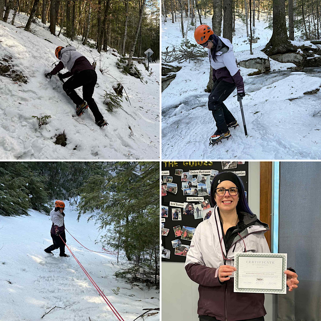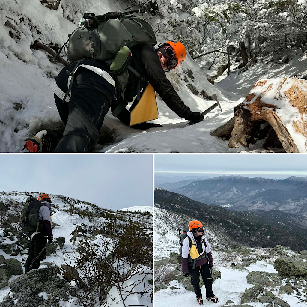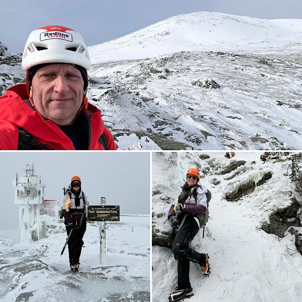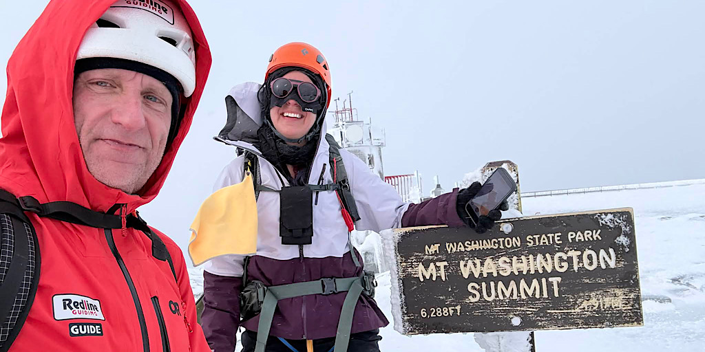She’s working on her winter 48 and Mt Washington was on her list so she reached out to us for assistance. She was interested in not just summiting the mountain but in also being further introduced to comprehensive winter skills and dipping her toe into the wild sport of mountaineering, both part of our Two Day Winter Mt Washington Program. The latter not just for the Rock and Ice Pile here in New Hampshire, but for something much grander down the road: Denali in Alaska — the tallest mountain in North America — someday. For now it’s a work in progress, but it’s work worth doing. On the job were Redline Guides Pat Ferland and Glenn Van Neil. Pat took lead on the first day, and Glenn led her up the mountain the following day. Here are some photos.