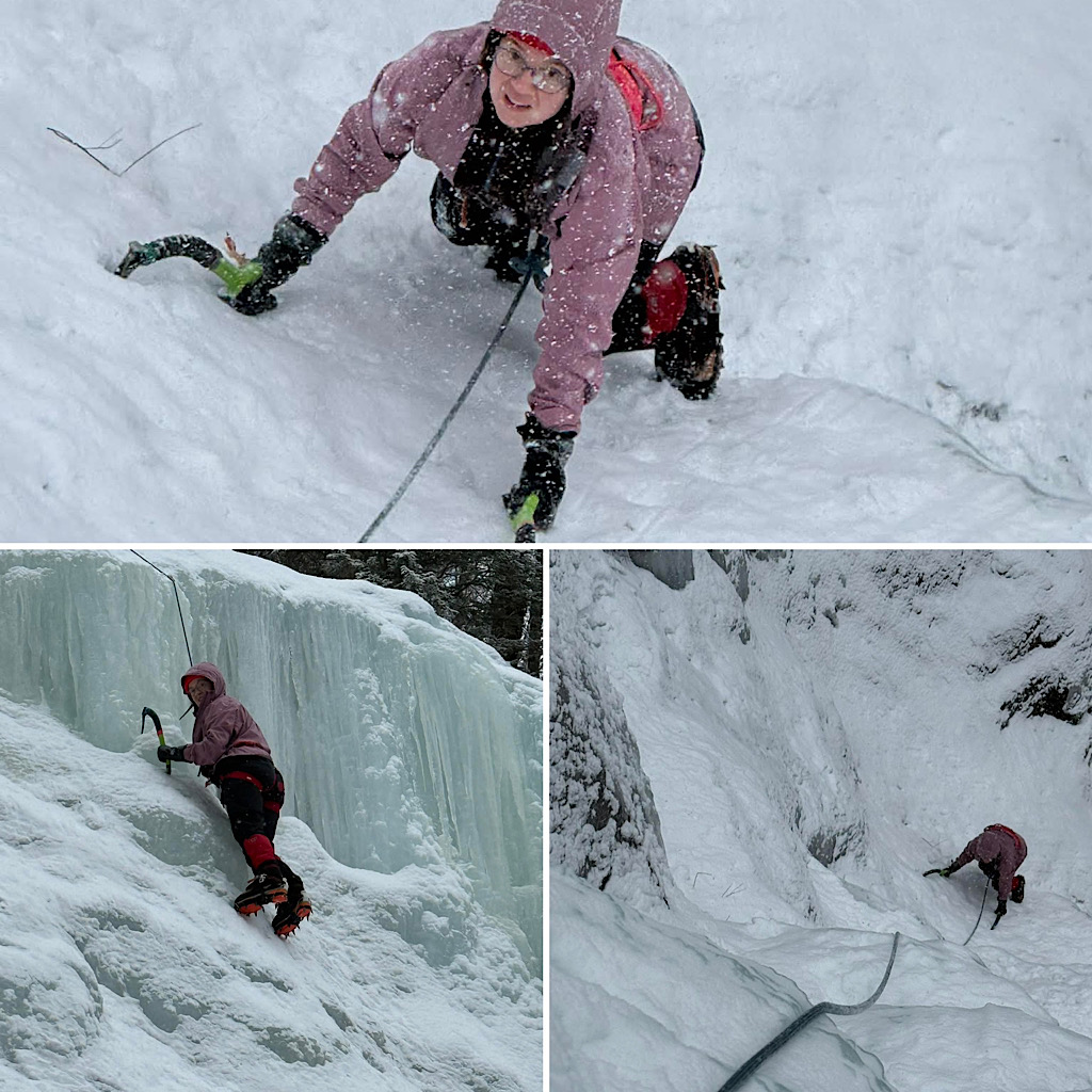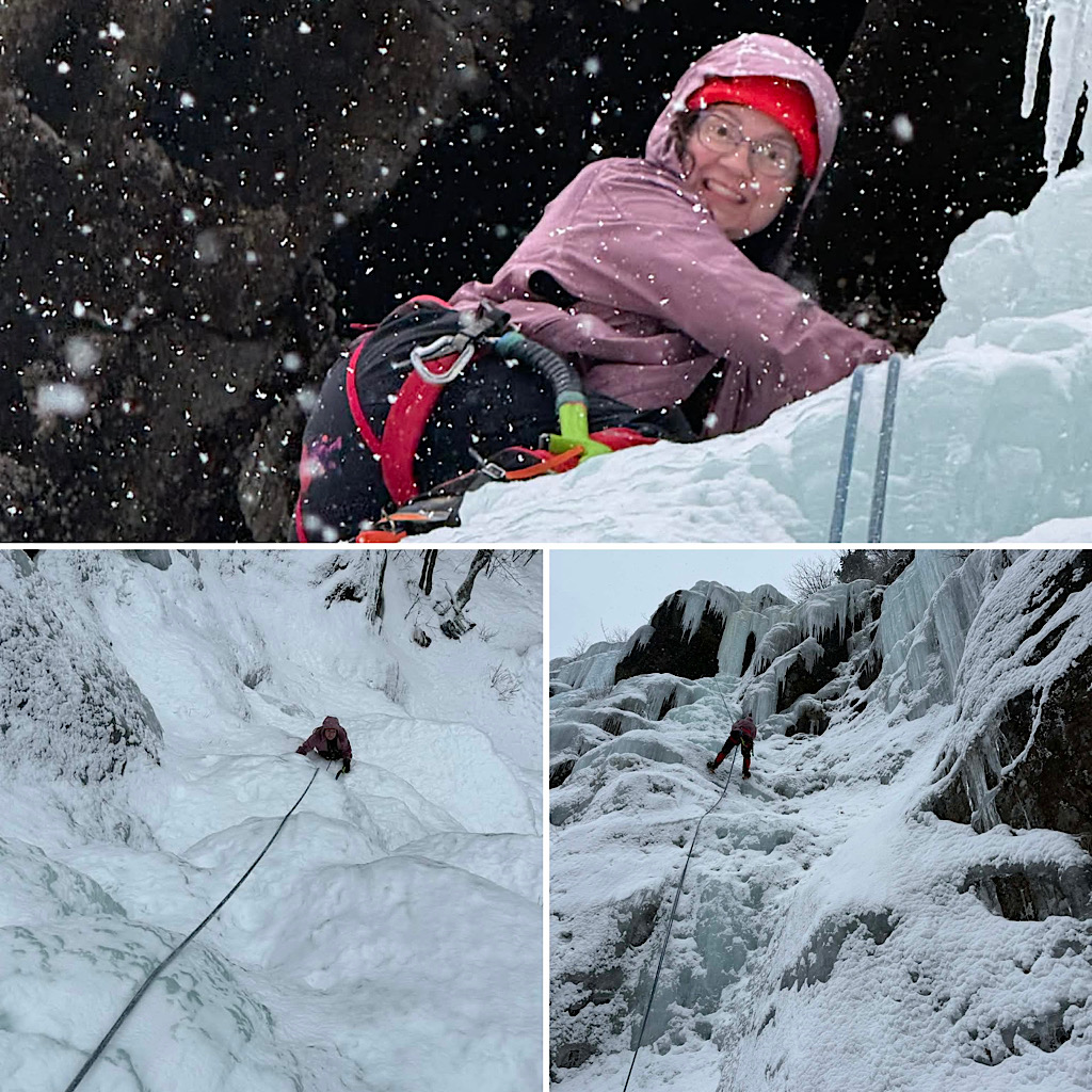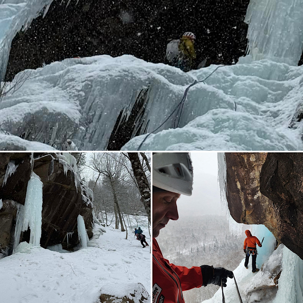 A returning guest who recently had a mountaineering experience with us wanted more, once again ratcheting up the challenge. This time she wanted to test herself by taking an Ice Climbing intro course. This was led by Redline Guide Glenn Van Neil and he took her to some popular spots in Crawford Notch. As reported, she did great. Here are some photos…