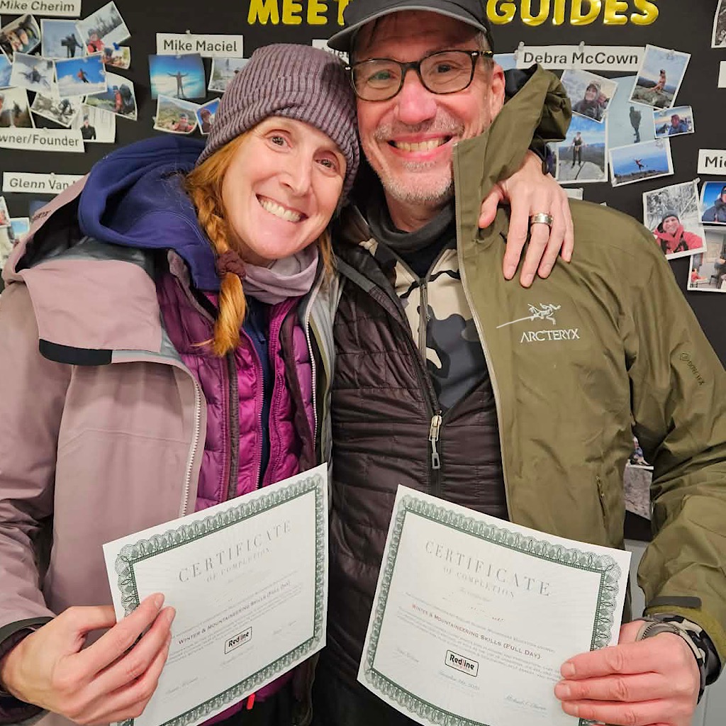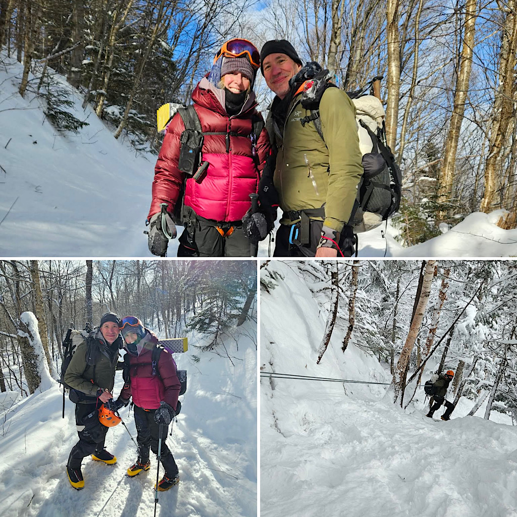 It was two good winter days outside — and affirmation od the fact that, in a region where check-box hiking lists are prevalent, it’s not just about summits. Learning new skills and climbing different routes in different conditions are worthy goals, too. What a great way to ring in the new year! I’ll be keeping an eye out for the pictures from this couple’s next adventure, using the skills they learned here. —Debra