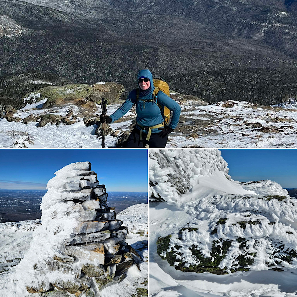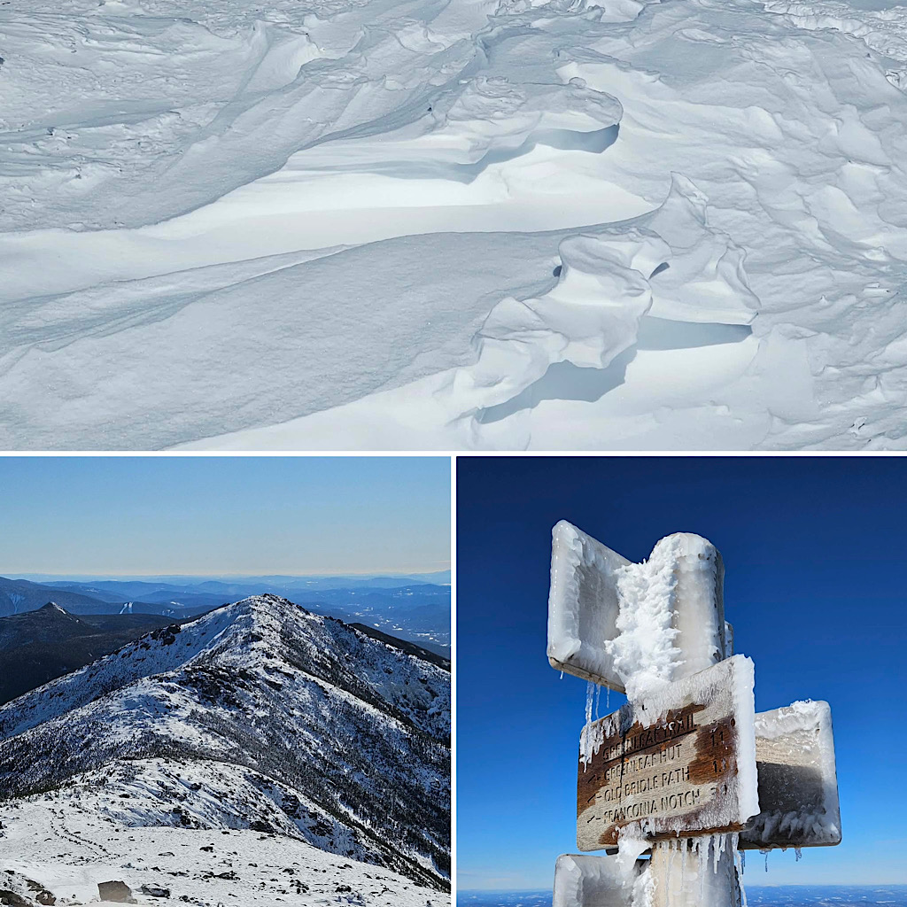 The last one just happened to be — like Tuesday’s guest — a participant in last winter’s Mt Washington Observatory overnight climb. So, they’d been on a Redline guided trip with me together before. What are the odds?! This guest absolutely hit the jackpot with his choice of the day for winter on Franconia Ridge. It was truly a day made for walking on ridgelines — and I was happy to be there for it. —Debra