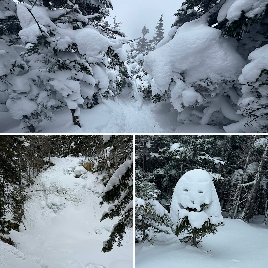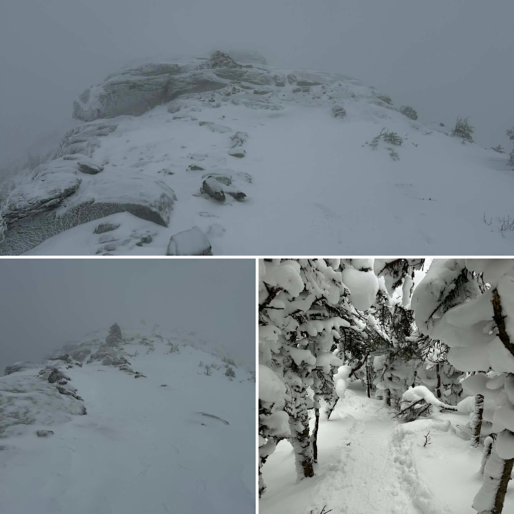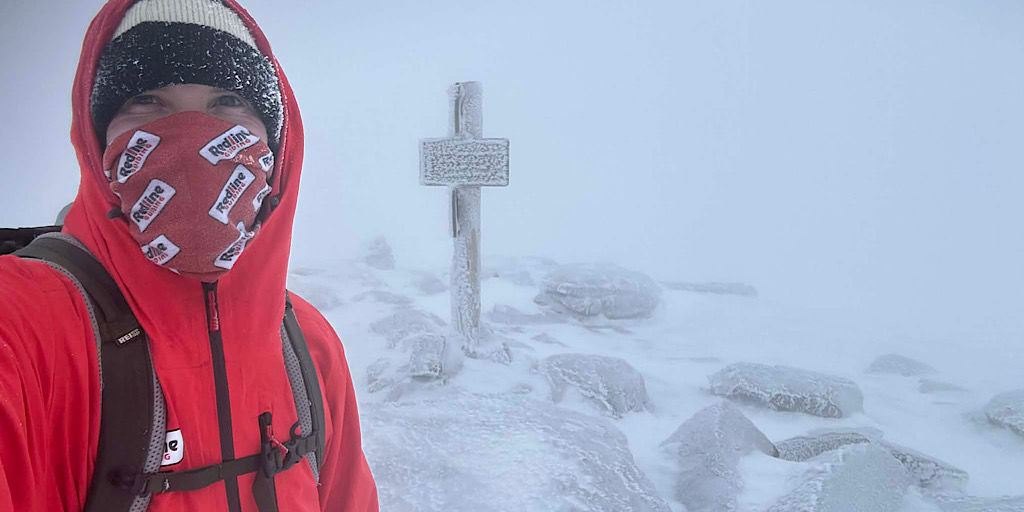 Though unspecified on our booking form, pre-trip conversation revealed that a returning guest really wanted to hike the classic Franconia Ridge loop in winter and she finally pulled the trigger, so-to-speak. They had to start early due to our guest having an afternoon commitment, but Redline Guide Chase Hall was happy to accommodate her needs. But it wasn’t necessarily easy. Near whiteout conditions required that the team employ some careful navigating. And with that said, they made it.
