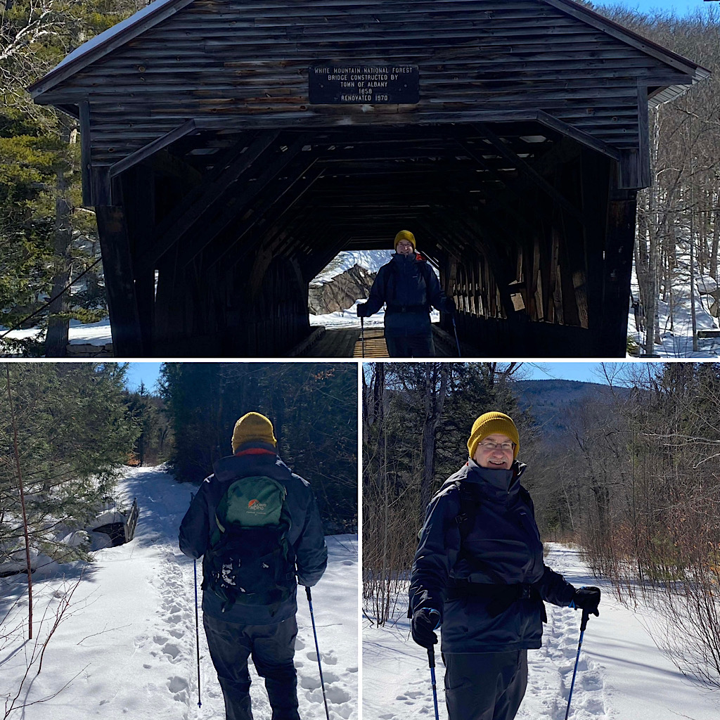 A guest reached out to us hoping to do a little snowshoeing in the mountains. After a short conversation and some due consideration the choice was made to stick to flatter trails. There are many options but we suggested taking our adventure to the Nanamocomuck Ski Trail along the Swift River. It’s such a pretty area, flat, and we knew it was broken out. Plus parking and access is great. It was a gorgeous day and Redline Guide Mary Fields was stoked to deliver the goods. Here’s a short summary from Mary along with some photos…