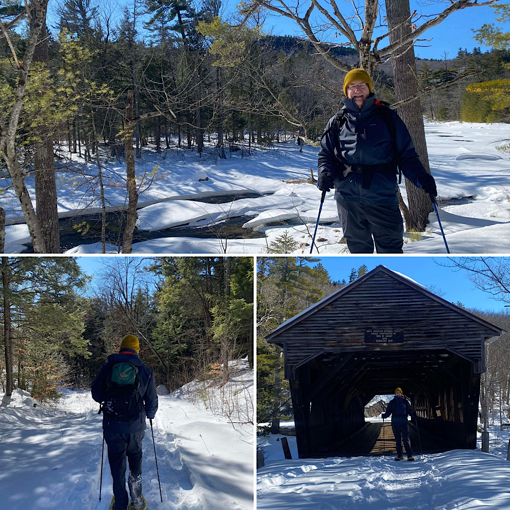 Our guest is an avid hiker and snowshoer from Connecticut. In the last three years he started coming up to New Hampshire for winter recreation. He chose Redline Guiding to bring him snowshoeing during the long Presidents’ Day weekend. He enjoyed an amazing bluebird day snowshoeing the Nanamocomuck. He enjoys the cardiovascular benefits of snowshoeing in the beautiful nature of New Hampshire. —Mary
