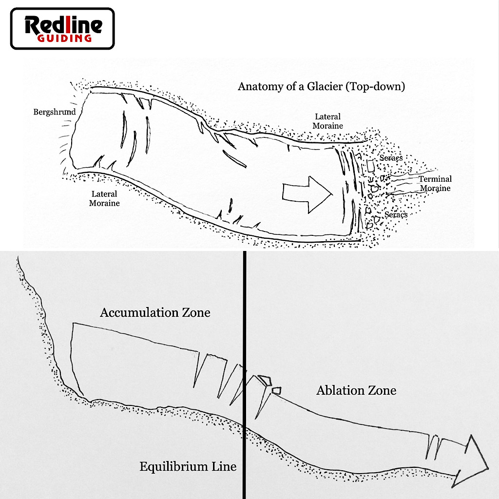 A glacier is analogue to a river of ice and snow. The “headwaters” of which are an area known as the “accumulation zone.” In this region snow piles up faster than it melts. Below this, nearing the “river delta,” so to speak, there is an area known as the “ablation zone.” In this lower region the snow melts faster than it accumulates. The demarcation of these two zones is known as the “equilibrium line.” All that said, it’s meaningless to us here in the Northeast. We have none of these features as there are no glaciers. Here all the snow melts and any snow or ice that remains is incidental and found in very small pockets in places like the Ice Caves, Ice Gulch, one spot along Great Gully Trail, etc.
