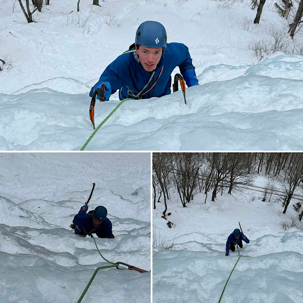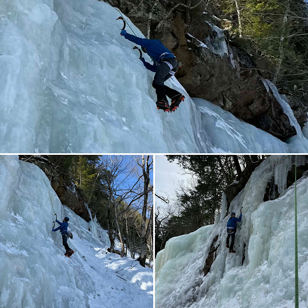 A new guest wanted to try his hand at some New Hampshire ice climbing so he signed up for a one day Intro to Ice Climbing course with us. We decided to put Redline Guide Glenn Van Neil on it. Glenn took him to Frankenstein Cliff in Crawford Notch to climb the Standard Route of Lost in the Forest. There our guest was able learn things and to hone his skills, and to work the ropes. What follows are a few photos.