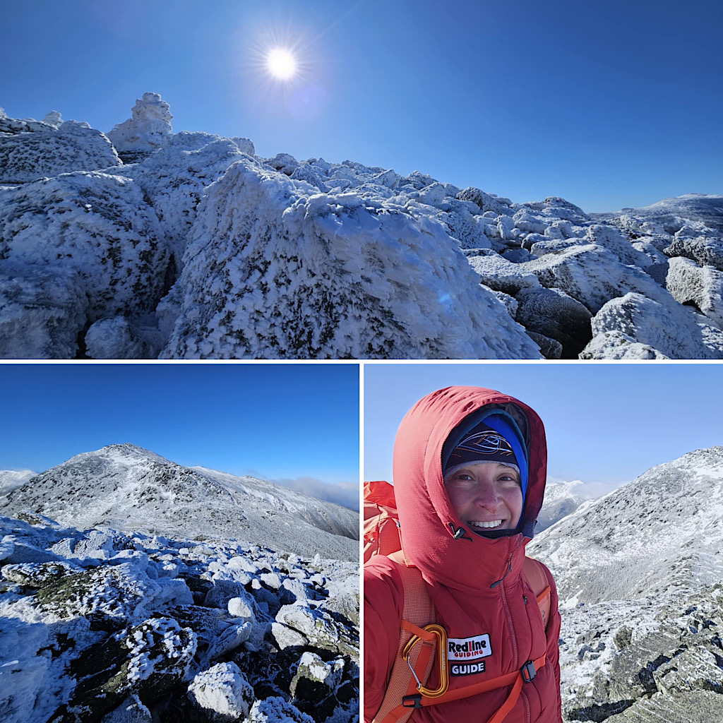 While the weather and ground conditions forced us to modify our plan, the guest was glad she got out to do some cold-weather camping and get some views in the Presidentials. I hope her summit weather on Denali is as beautiful as it was on Mt Madison! —Debra
