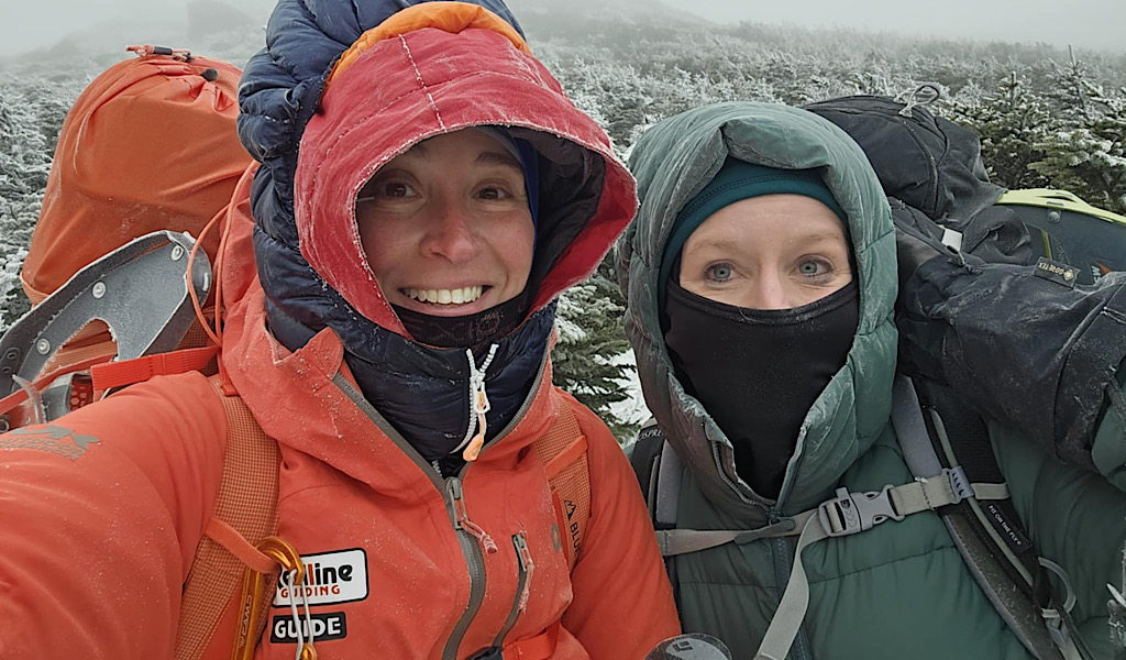 A person came to us hoping to do an overnight in the alpine as part of her prep for climbing Denali later this year. Training like this is fairly common for those taking on the world’s tallest mountains. Here in NH, especially on the Presidential Range, we have the terrain (excluding glaciers) and the mean mountain weather to provide a real world simulation without having to spend thousands of dollars, and take days or weeks off to get it done. Here in NH the alpine environment with all of its attributes, good and bad, is literally just a few hours from the trailheads. This accessibility is one of the reasons it’s so common for folks to get into trouble in our mountains, but it does make for a great training ground. Thanks to insane winds the team, led by Redline Guide Debra McCown, had to change plans, but there was still a solid training experience with it all. Here are the details…