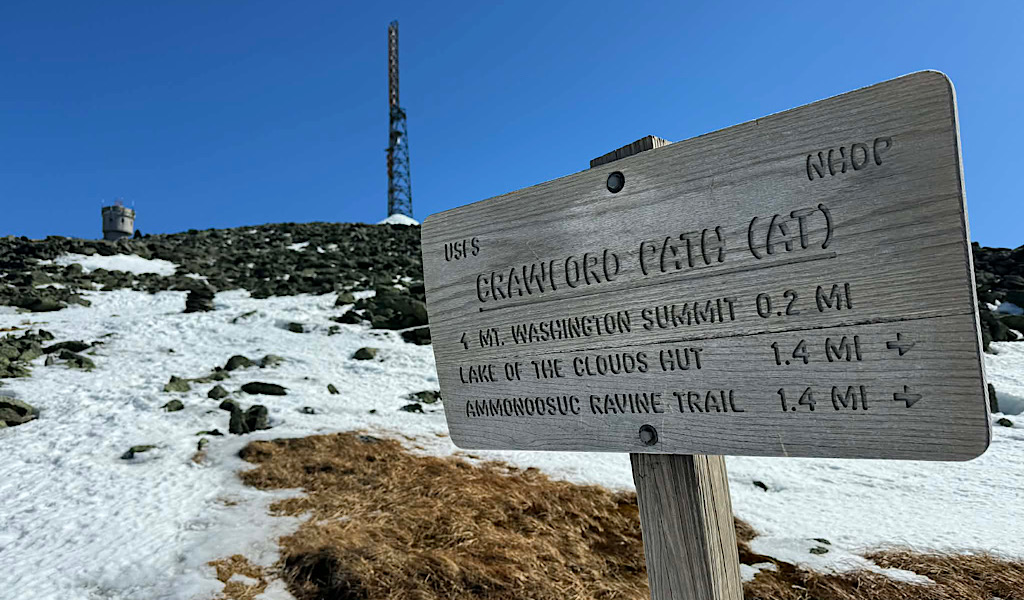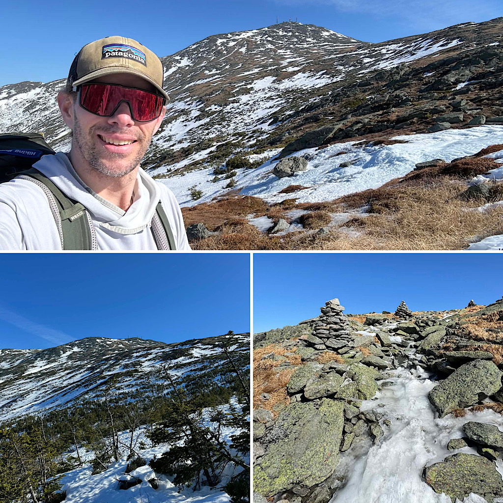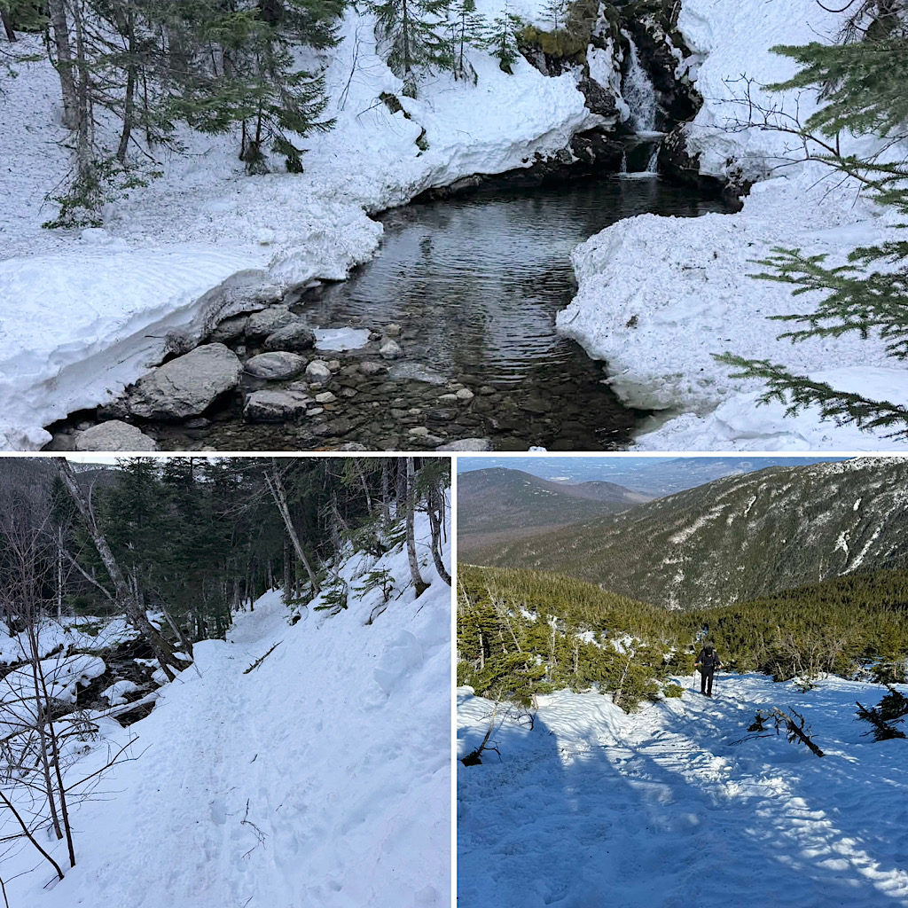 We had Redline Guide Chase Hall out there leading on the Ammonoosuc Ravine Trail and Crawford Path on Mt Washington. With him was a single guest. The majority of the hikes Chase leads are for one fellow we’ve taken to calling “Grid Getting Guest” (as a part of our privacy policy we don’t divulge names). On this most recent hike, our guest had the same first name as Chase’s regular. We thought that was a funny coincidence, and it wasn’t the only one. Chase learned that the father of both of these guests served as a pastor. Anyway, we just found these coincidences humorous. That aside, they had a great hike up the mountain summiting on a beautiful and warm late winter day. What follows are a few photos of this wonderful hiking experience.