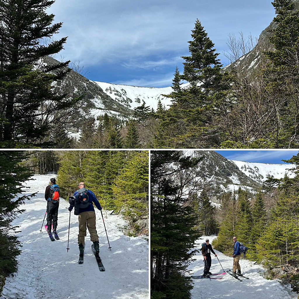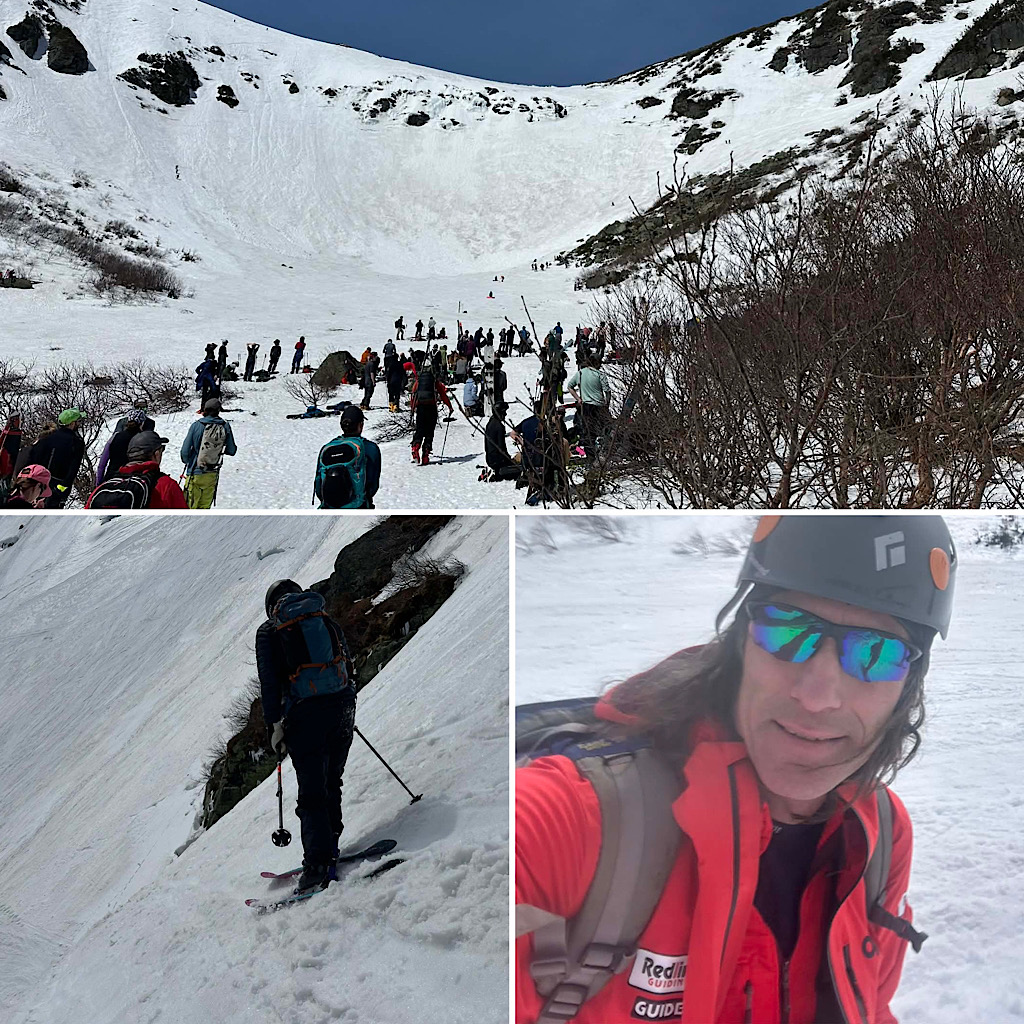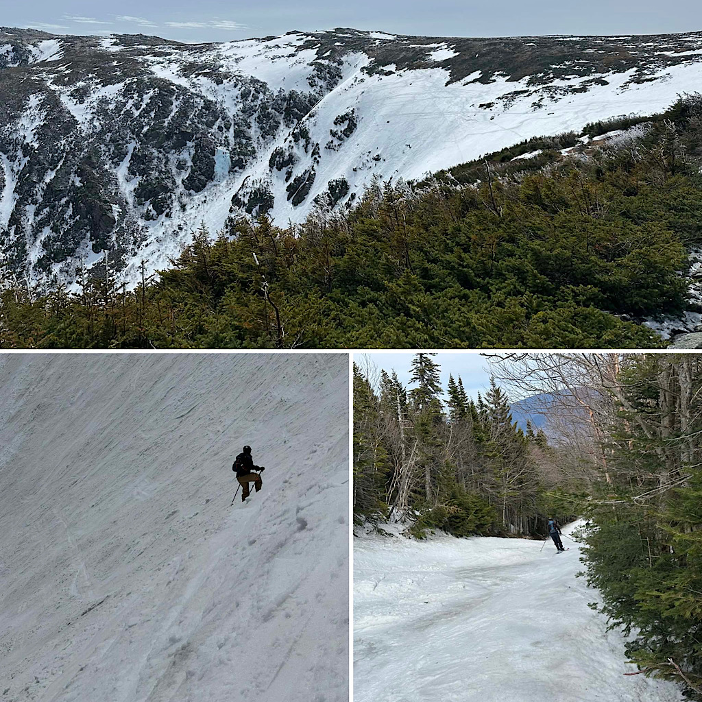 We had one more group up there on Mt Washington, this time with Redline Guide Will Murphy. There were able to start skinning up Tuckerman Ravine Trail about a mile in and at the end of the day they were able to ski out on the Sherbie until the third water bar. From there they hiked. This was another father-son duo thing, getting the kids hooked — the father’s 16 year-old this time. The highlight of the day was that they were able to ski Right Gully including the steep west wall. Here are a few photos (and one video) of the day…
