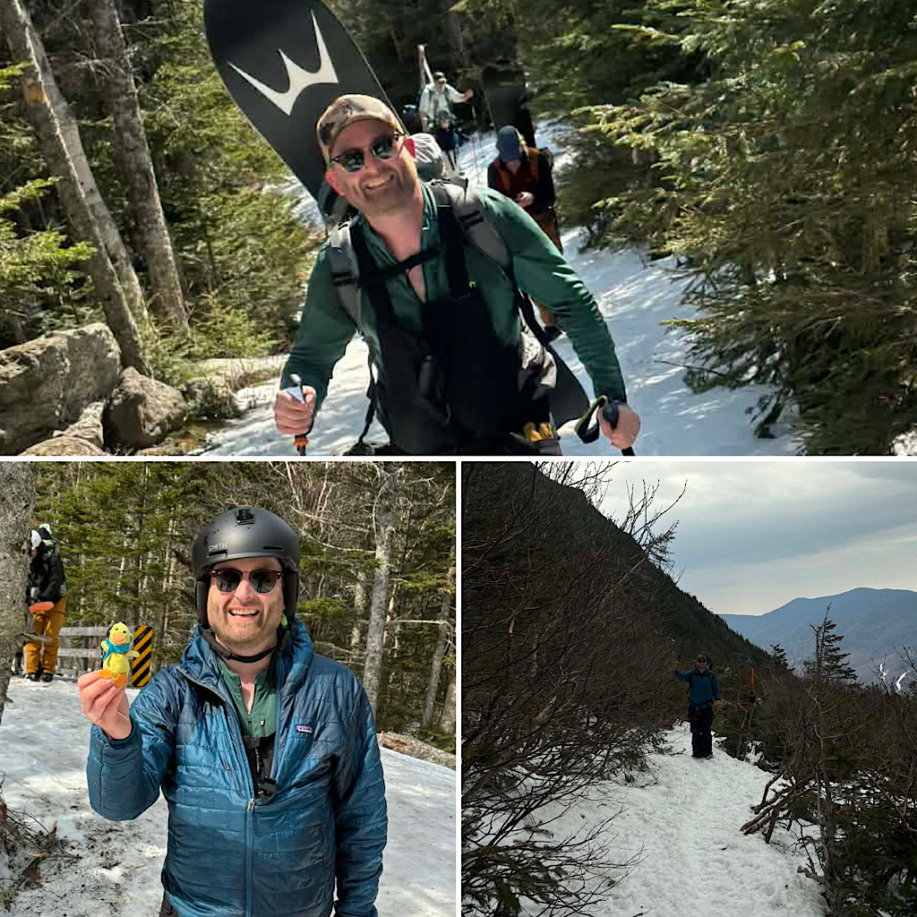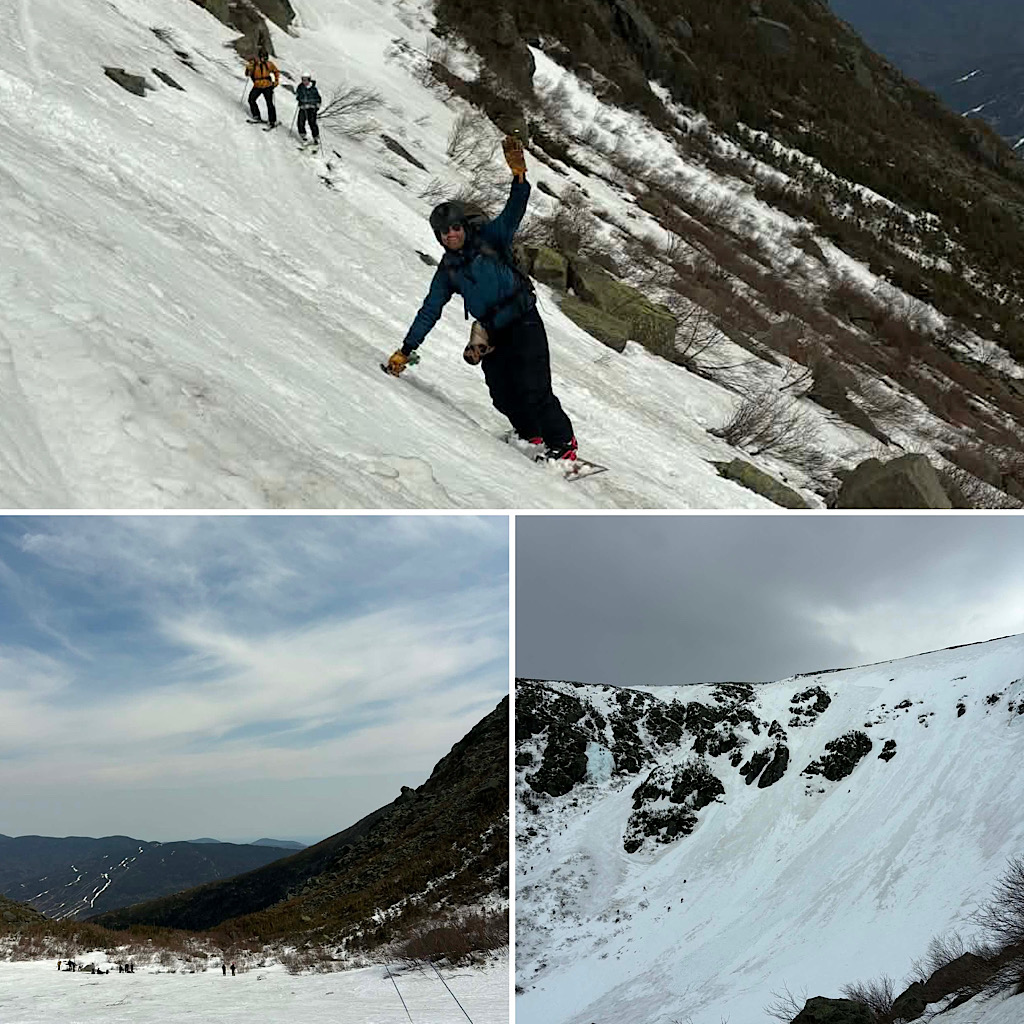 Today’s guest visited us with the hopes of taking on Tuckerman Ravine on a snowboard. A first for him. As many will tell you, this is a rite of passage here in the Northeast and certainly worth the effort it takes. And what a great day for it they had. After some conversation and observation it was decided that Right Gully would be the focus of the day, both the climbing up and the riding down. Leading the charge was Redline Guide Pat Ferland. That said, let’s get to the pics…