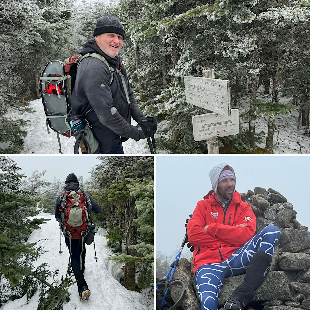 Seems like it was just a day ago when our Grid Getting Guest finished up Whiteface and Passaconaway and here he is again… completing the Kinsmans. The light is shining at the end of his tunnel. Leading this hike, a staple in his arsenal, is Redline Guide Chase Hall.