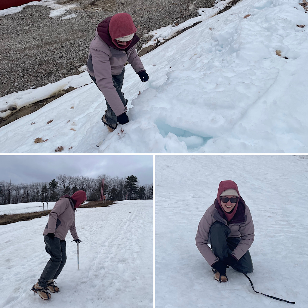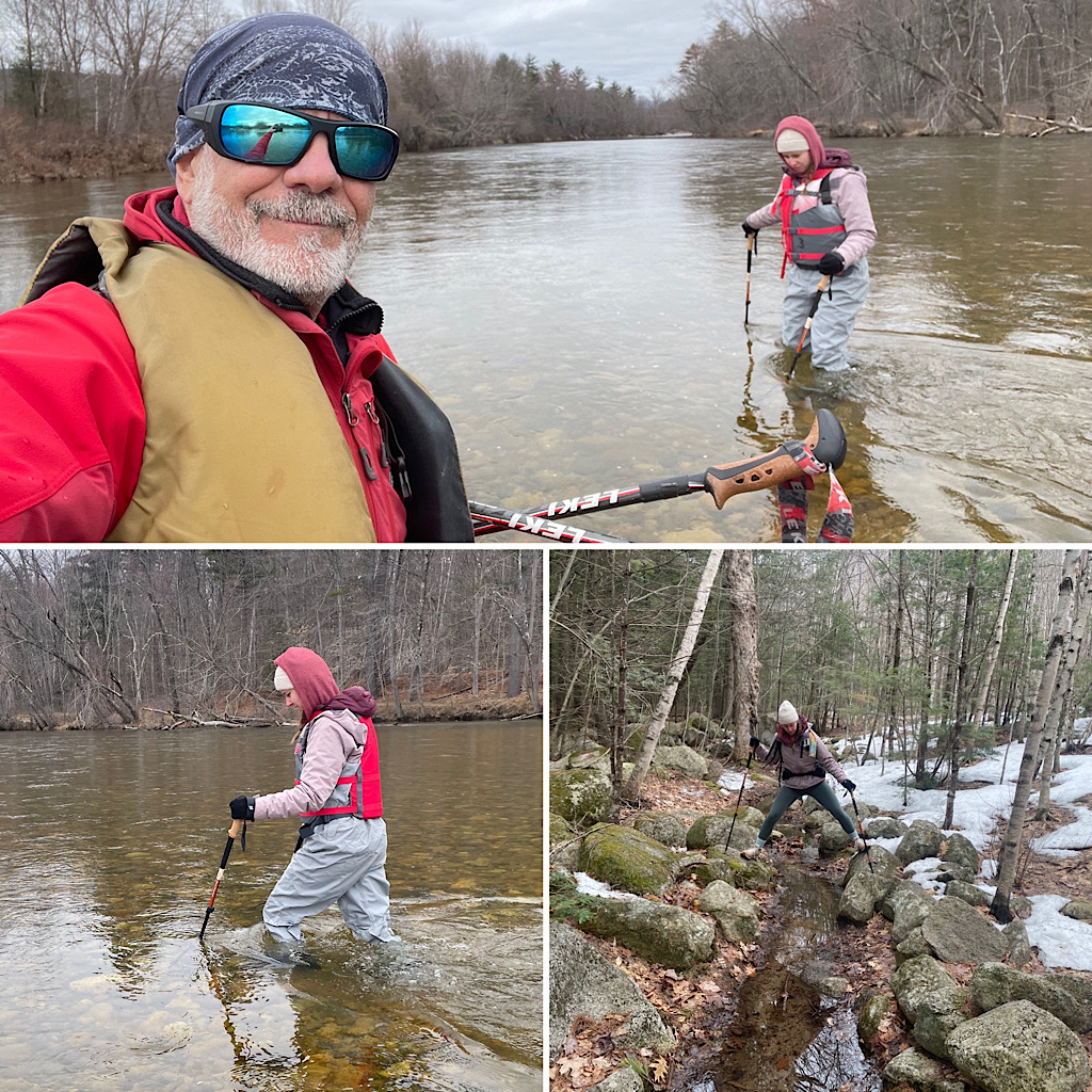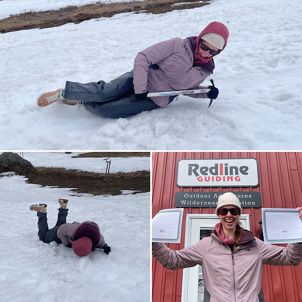 Several guests have come to us over the years looking for some help getting them up to speed on certain topics related to thru-hiking the Pacific Crest Trail (PCT). In particular are our River Crossing Skills and Basic Mountaineering courses. This day was no different as we taught both half day courses back-to-back (charging as a full day versus two half days). Leading both classes was Redline Guide Mike Cherim. Before we get to the photos, we’d like to make a happy shout-out to our friends at the Black Mountain Ski Area in Jackson, NH, for kindly allowing us to use their mountain and its snow. Thanks to their kindness we are able to offer these courses later in the season without climbing to a higher elevations looking for snow or, worse, throwing in the towel on the season altogether.