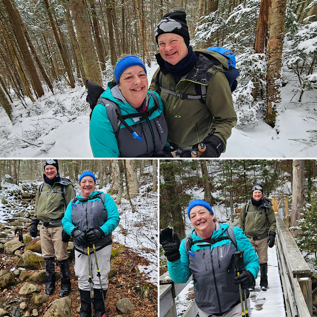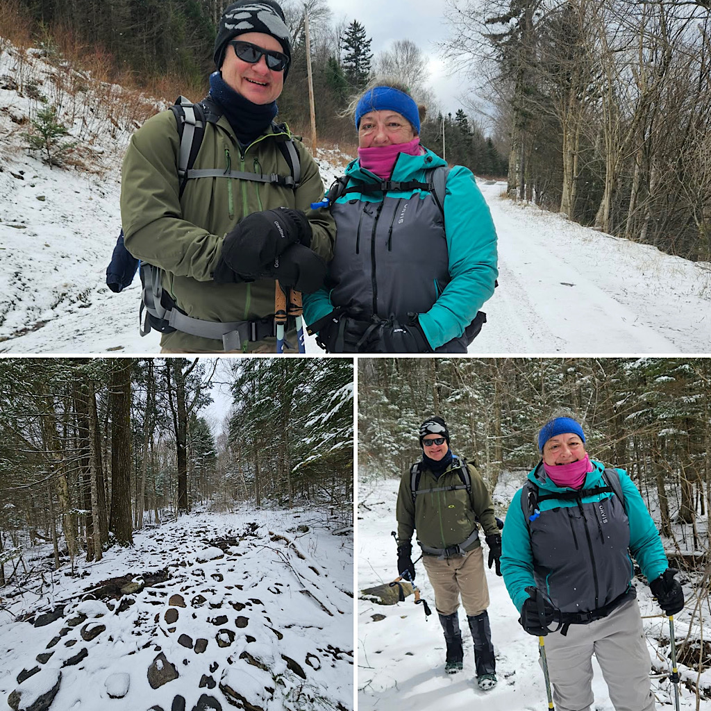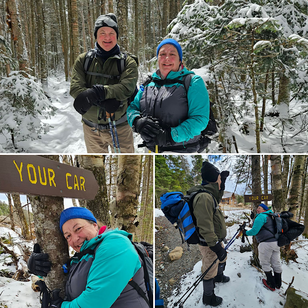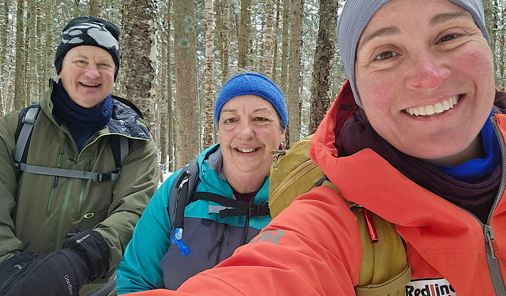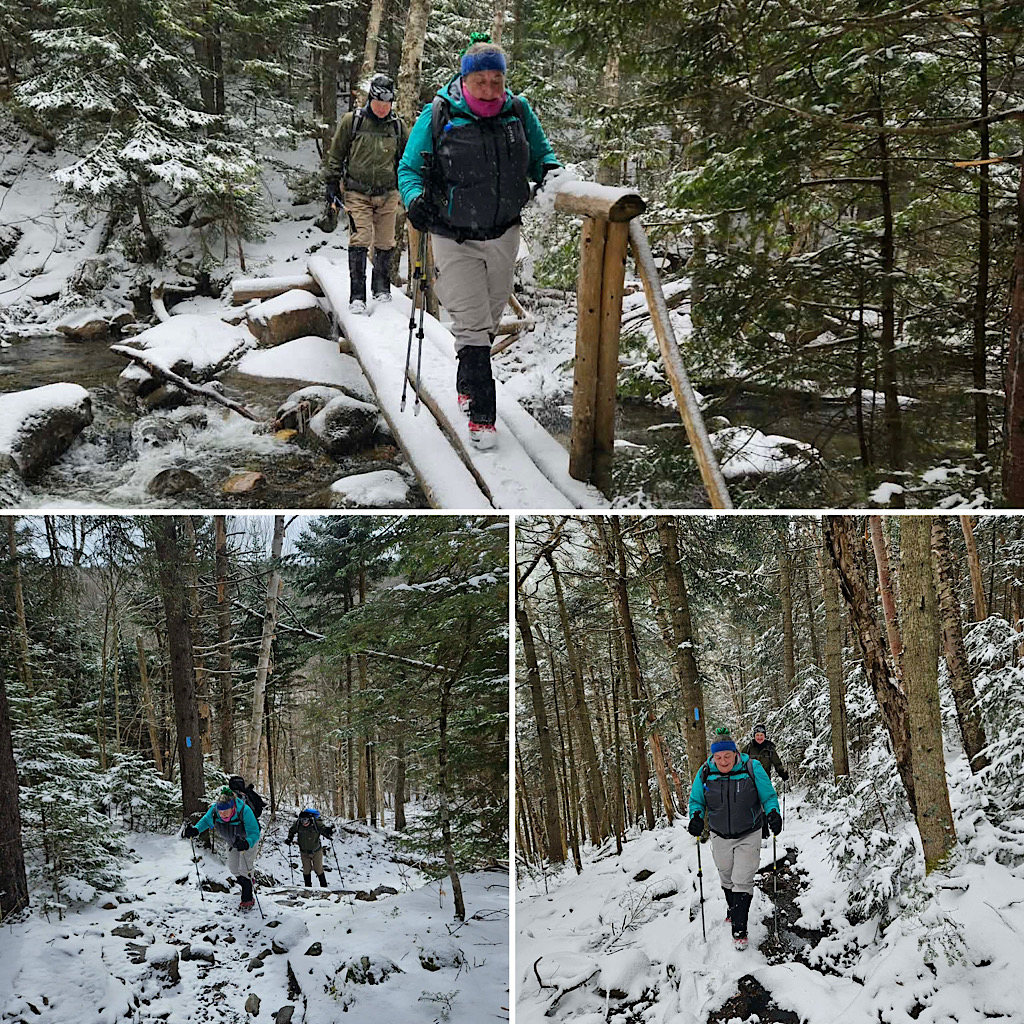 Proof that the seasons can waffle a bit can be found in our mountains. In this case, on Mt Moosilauke. At the trailhead the end of the day it was becoming a spring day, but for a good part of the day it was pretending it was still winter. Leading this multi-season trip for a visiting couple from Ohio was Redline Guide Debra McCown. What follows is her summary along with some photos.