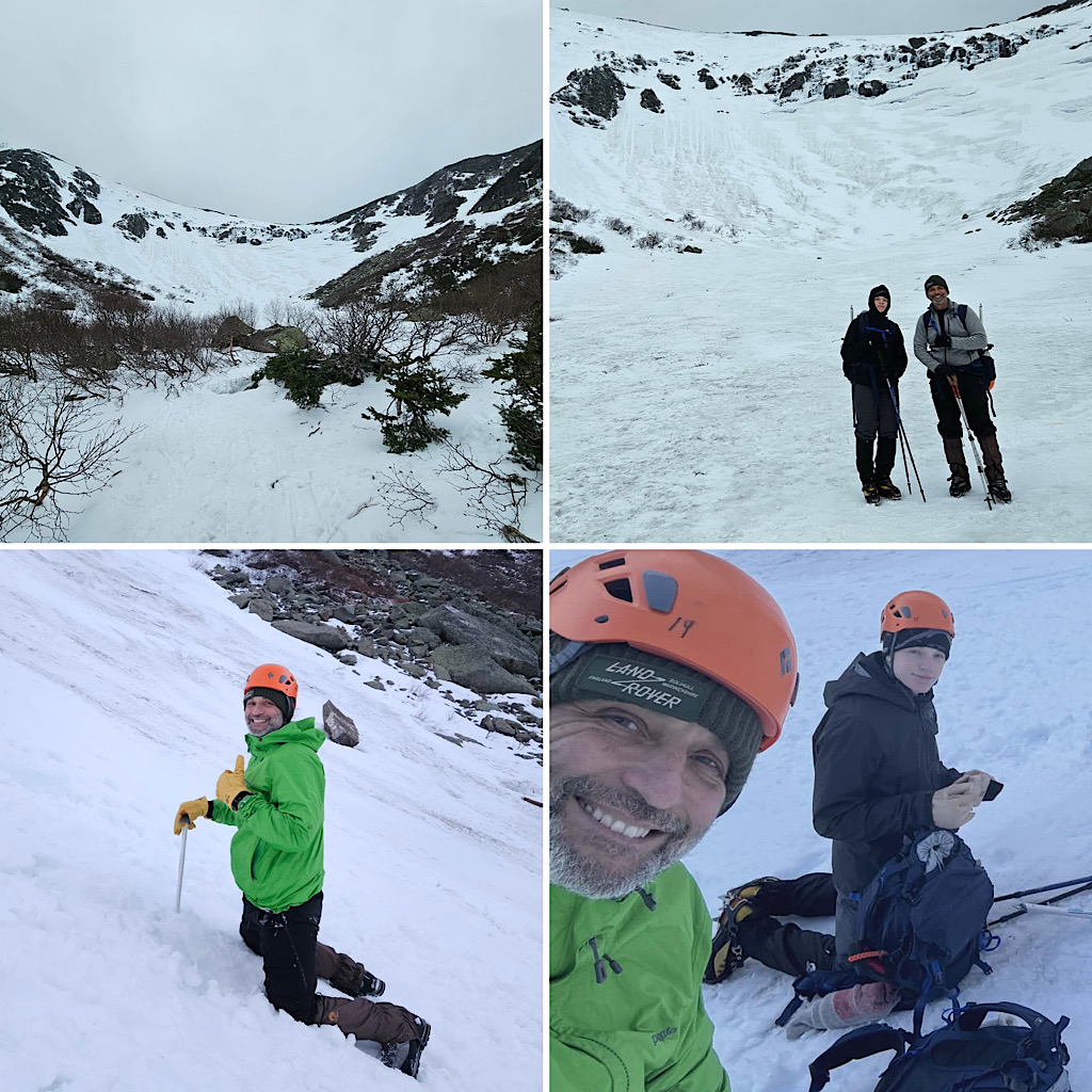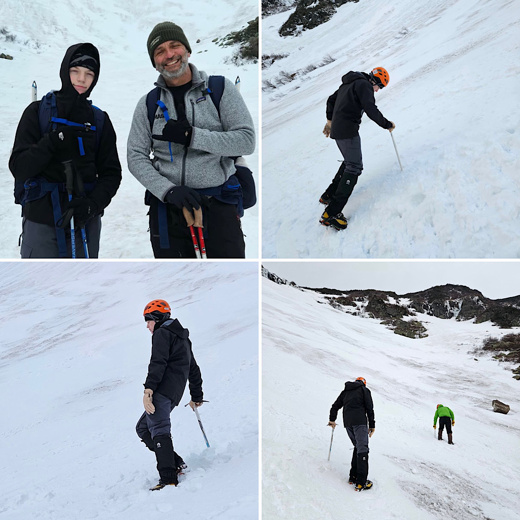 They’d done some hiking in the past, so they felt like they’d be ready, but carrying overnight packs up the trail on New England’s highest peak proved tougher than they expected. On the first day, after some classroom instruction, we hiked up to Hermit Lakes (our camping spot) and did some skills training in the bowl of Tuckerman Ravine.