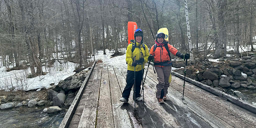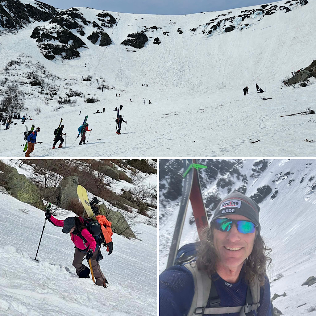It’s that time of the year again. Time for some backcountry skiing. The front-country reluctantly throws in the towel on skiing while skiers and riders alike head for the hills. In this case, our friends from Canada came down here hoping for a guided experience in the famed Tuckerman Ravine — central to the Northeast backcountry experience. We were happy to fulfill their adventure request. Leading and teaching them on this tour was Redline Guide Will Murphy. We added “teaching” because even though this wasn’t a backcountry ski intro class, Will did cover some of the basics before heading up Right Gully. For instance: self arrest. And it’s good that he did relay this important how-to information because one of our guests caught an edge skiing down and fell into what could have been a long, sliding variety. It wasn’t a long- sliding fall because Will took the time to cover this critical information so when he yelled “ARREST, ARREST!” the guest who fell knew what to do and was able to self-rescue. This is fantastic and the best news possible! Well done teacher and student!