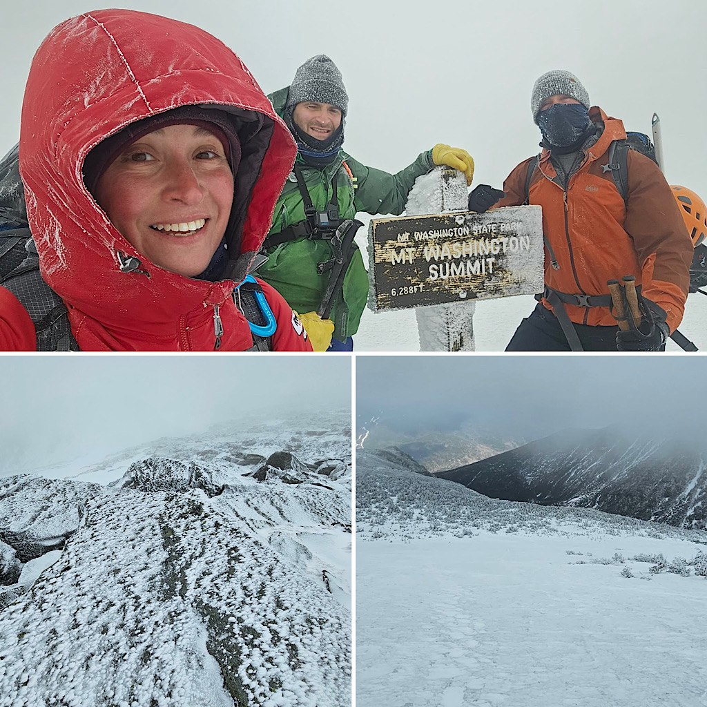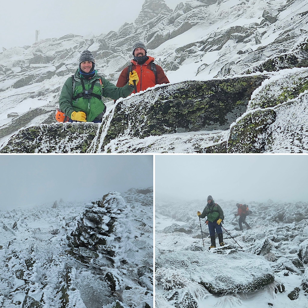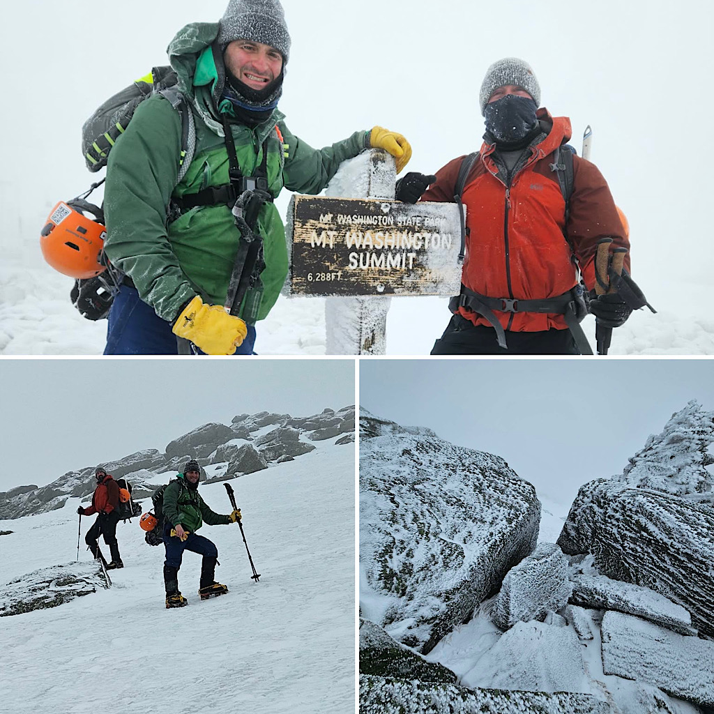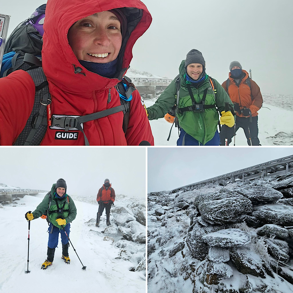 We had some wind but overall decent weather, and the guests got to learn some fun White Mountain words like ‘rime ice’ and ‘spindrift.’ A good day in the mountains! —Debra