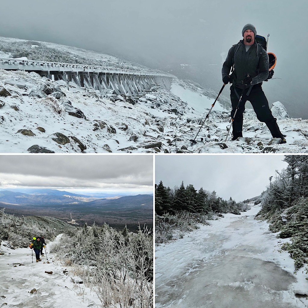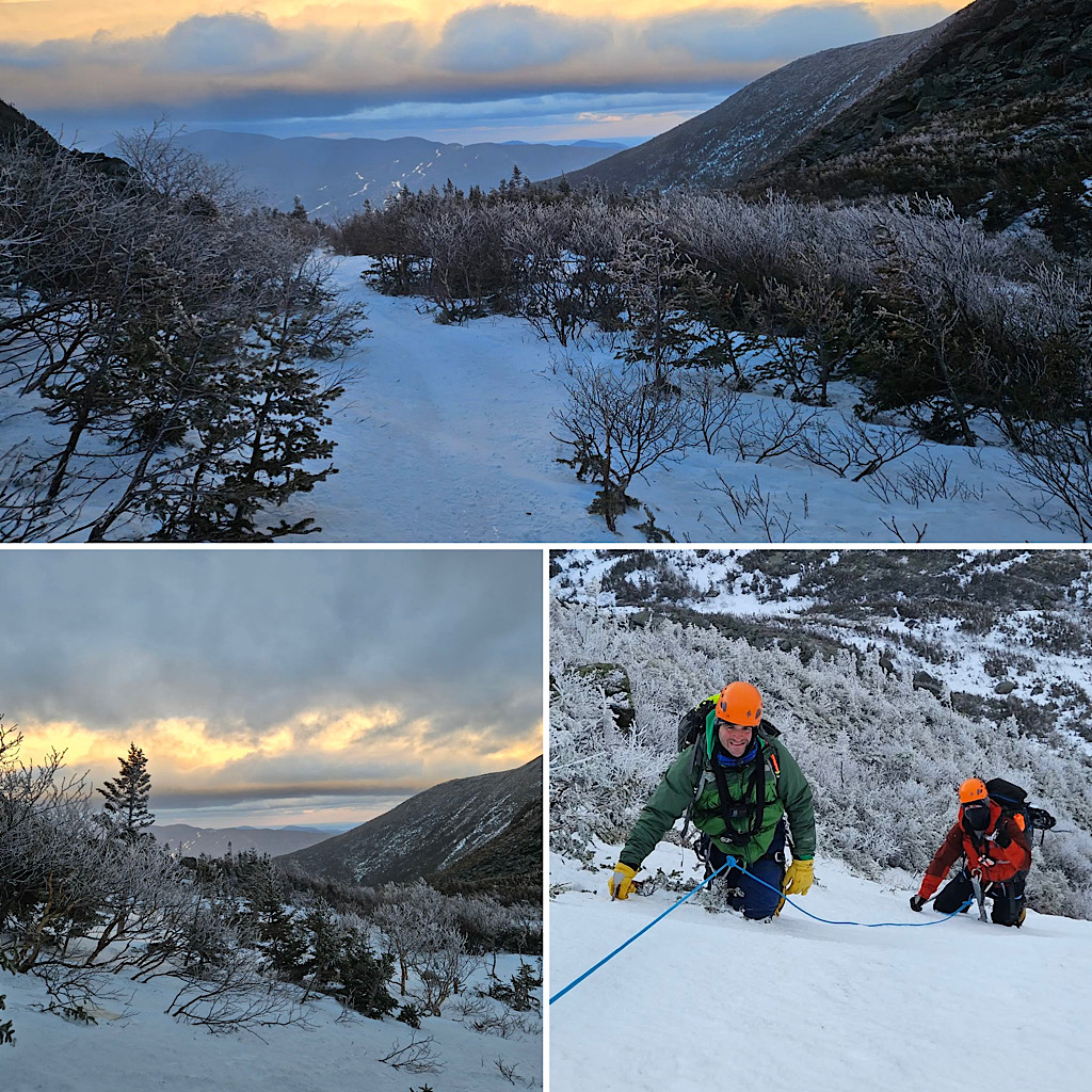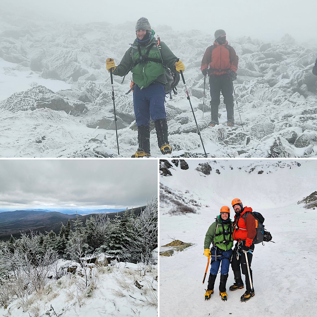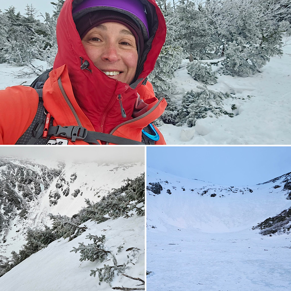 We had some wind but overall decent weather, and the guests got to learn some fun White Mountain words like ‘rime ice’ and ‘spindrift.’ A good day in the mountains! —Debra