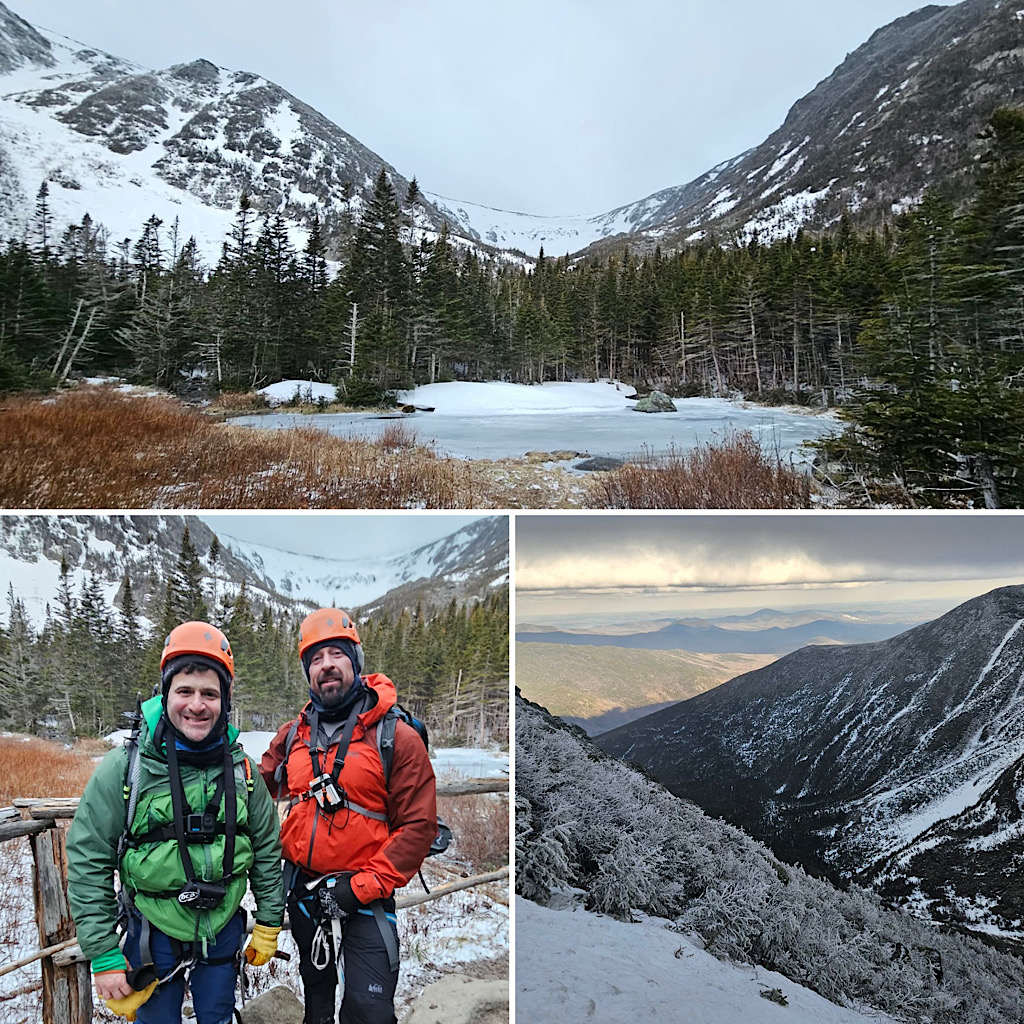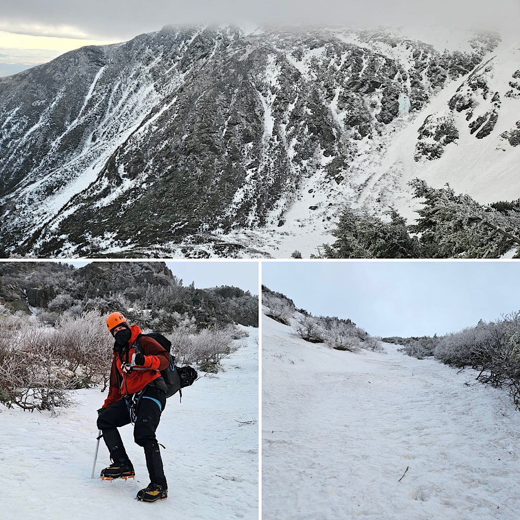 The original plan was to go out and back to the summit via Lobster Claw or a similar gully. But then we found out that the Tuckerman Inferno ski race was going to use all if the gullies in the ravine, and we didn’t want to do it in a crowd.
